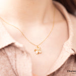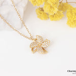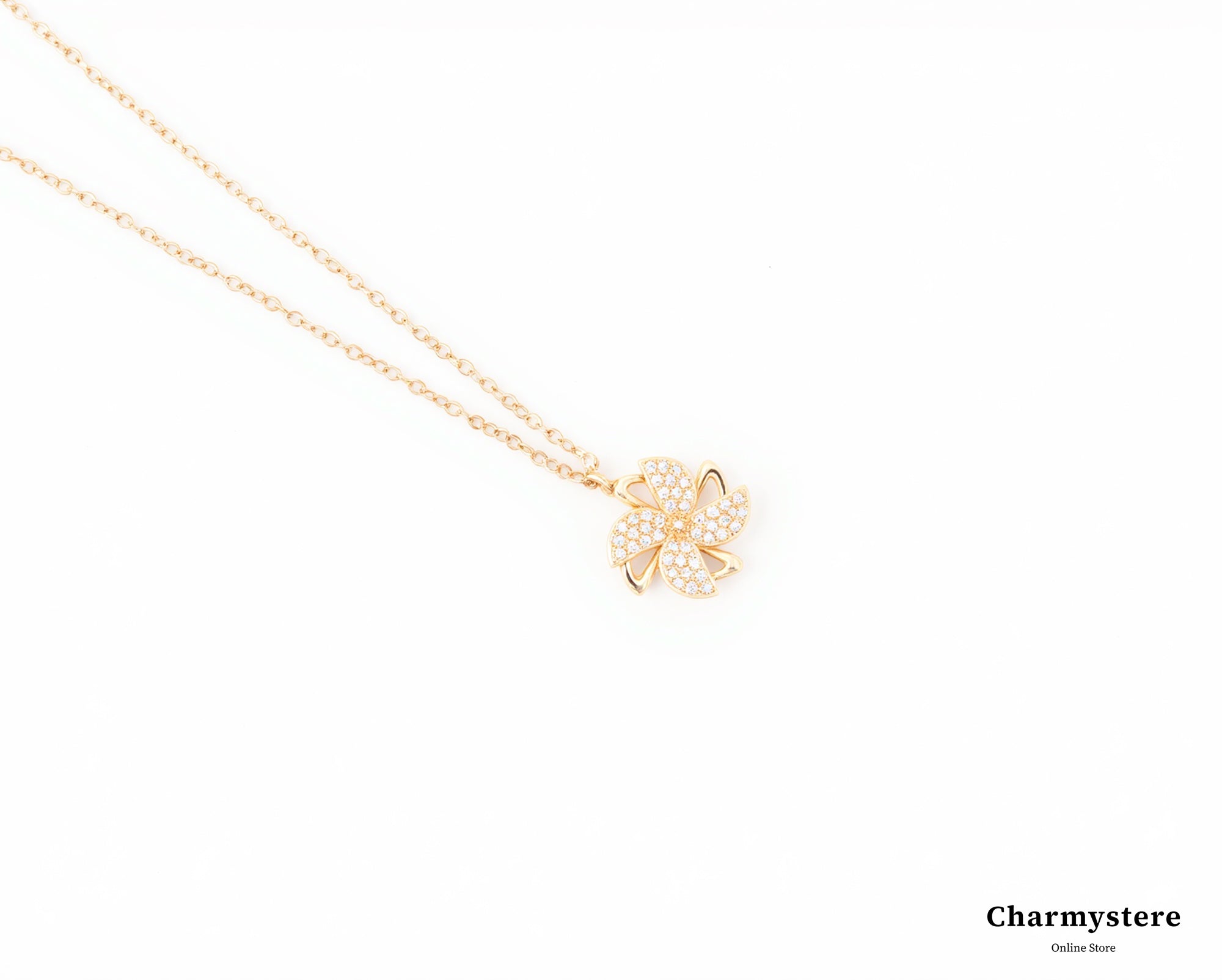 くるくると回る風車のような爽やかなネックレス。デコルテのポイントとなりエレガントな印象に。