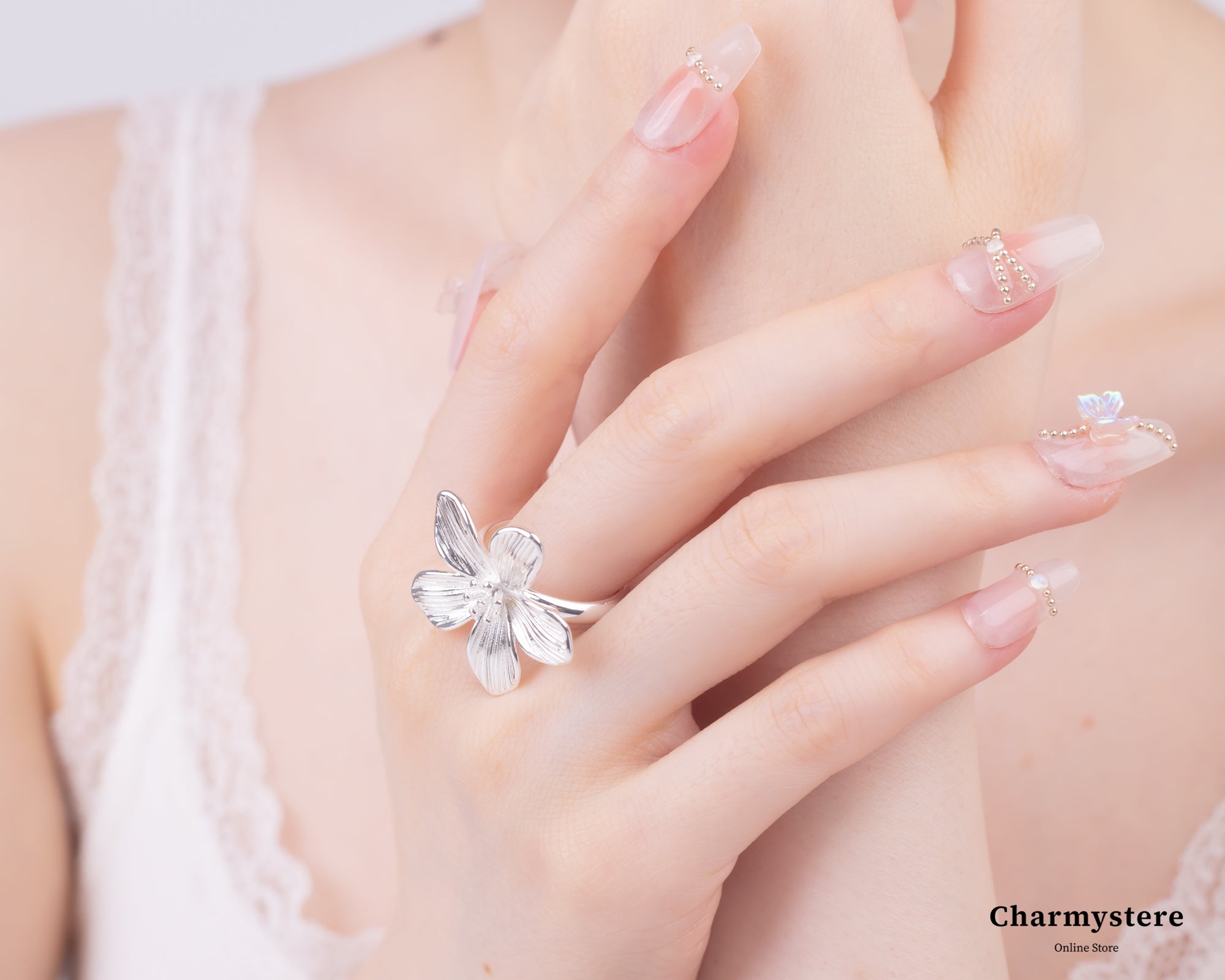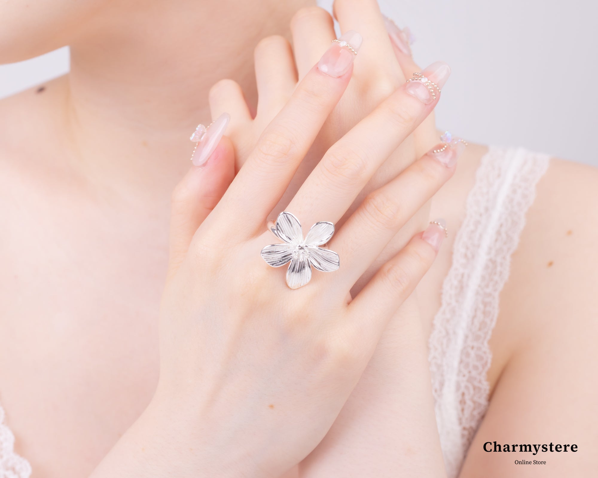 花を纏うアクセサリーで春をお迎え🌷 待ちに待った春。暖かい風が心地良い季節に。冬の寒さが和らぎ、色とりどりの花が咲き始めるこの時期は、新しいことに挑戦したり、自分自身をアップデートしたりするのにぴったりのタイミング! そんな春の訪れを、もっと身近に感じコーデに取り入れてみて。 そんなCharmystereの新作は春の花々をモチーフにしたアクセサリーたち。   【ピアスで】耳元で揺れる、可憐な春の花耳元を彩るのは、まるで本物の花びらのように繊細なピアスたち。お顔まわりに取り入れることによって表情をより一層華やかに演出してくれる🌸 【ブレスレット・リングで】指先に咲く、春色の花指先には、春色の花々を散りばめたリングを。シンプルなデザインから、華やかなデザインまで、豊富なバリエーションをご用意。お気に入りのリングを身に着ければ、ふとしたときに指先を見て、そのたびに心が弾む。 【ネックレスで】デコルテに飾る、春の花束を。繊細なチェーンと、きらめく花のモチーフが、あなたのデコルテを美しく彩り春を感じる☘️シンプルな装いにプラスするだけで、一気に春らしい華やかな印象に。 花を纏って、新しい季節へ春のアクセサリーは、身に着けるだけで心がときめき、春の訪れを感じさせてくれる。   フラワーモチーフ一覧はこちら←