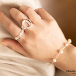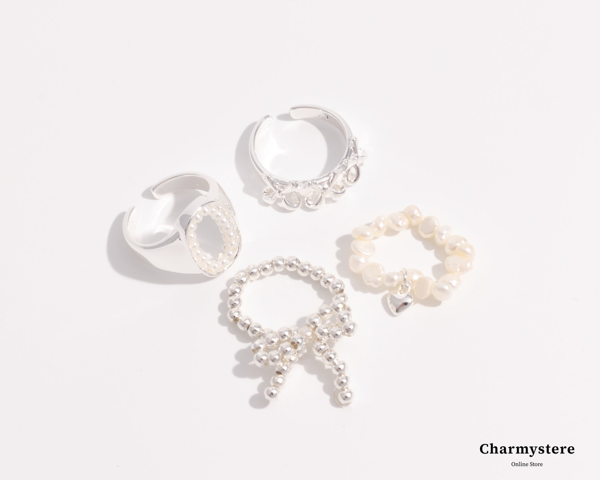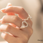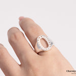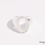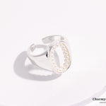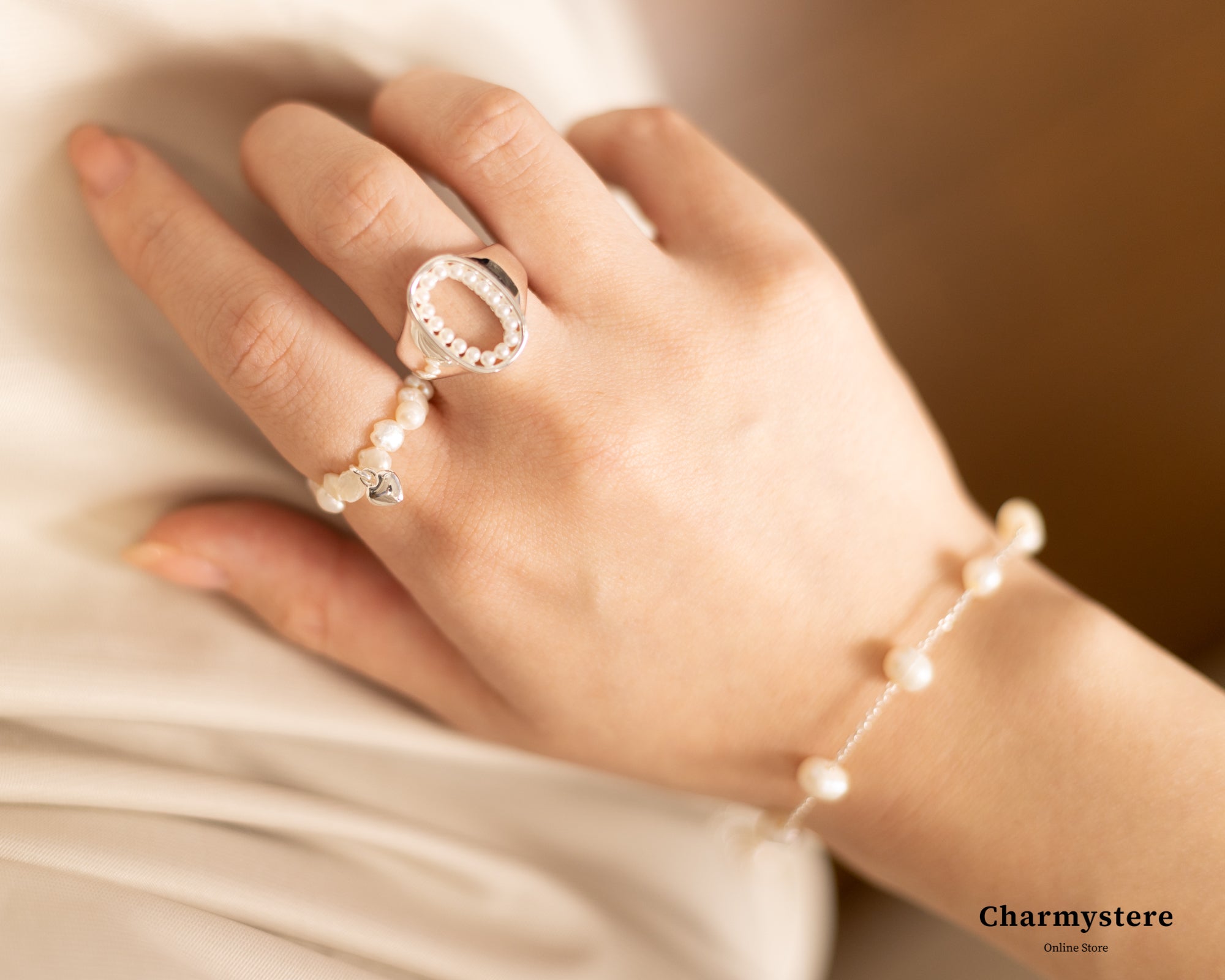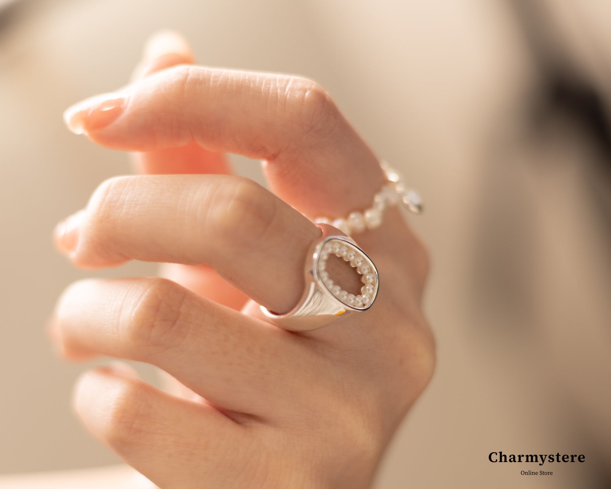 スタイリッシュなオーバルリングにパールが敷き詰められた個性的なリング。