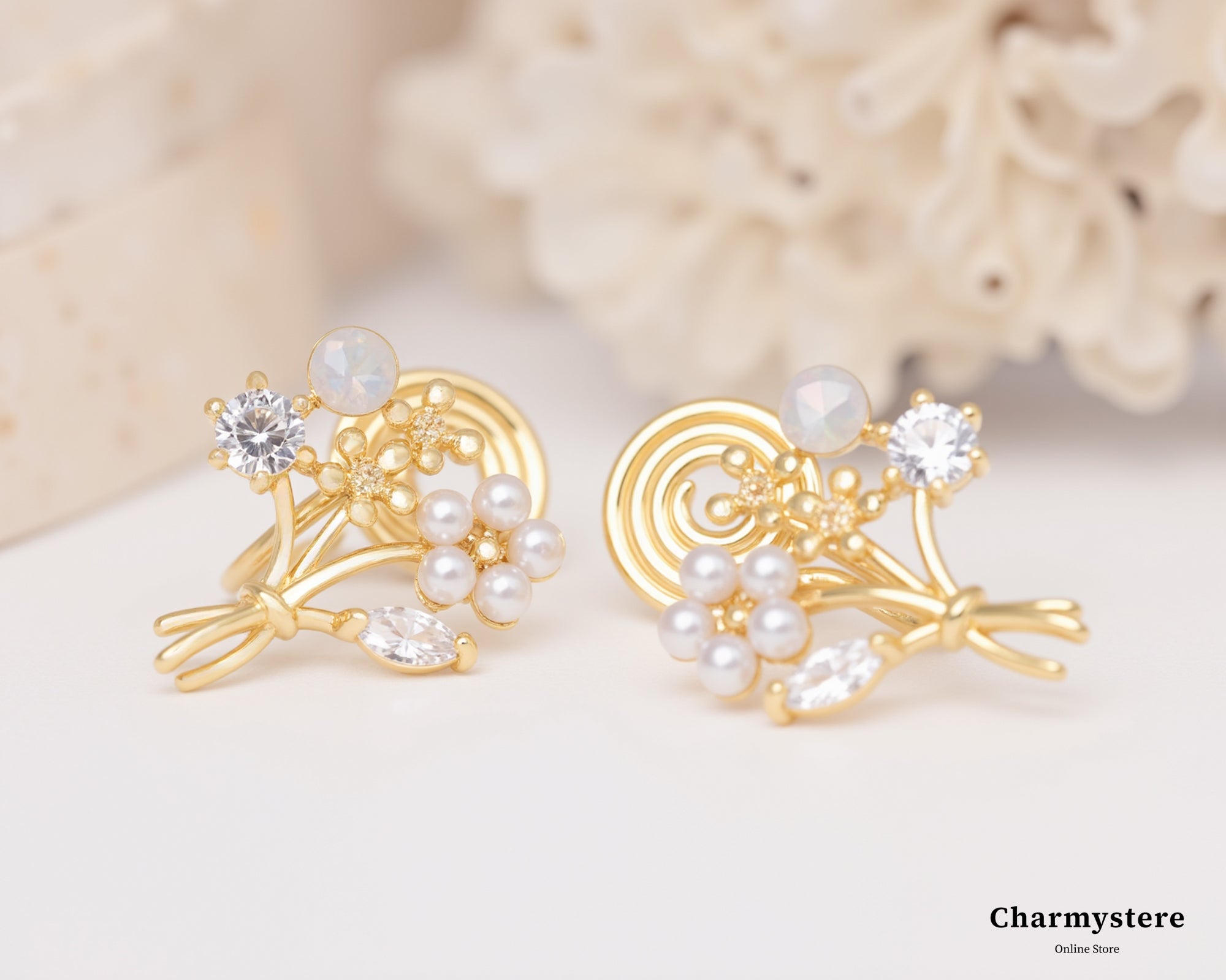 花を纏うアクセサリーで春をお迎え🌷 待ちに待った春。暖かい風が心地良い季節に。冬の寒さが和らぎ、色とりどりの花が咲き始めるこの時期は、新しいことに挑戦したり、自分自身をアップデートしたりするのにぴったりのタイミング! そんな春の訪れを、もっと身近に感じコーデに取り入れてみて。 そんなCharmystereの新作は春の花々をモチーフにしたアクセサリーたち。   【ピアスで】耳元で揺れる、可憐な春の花耳元を彩るのは、まるで本物の花びらのように繊細なピアスたち。お顔まわりに取り入れることによって表情をより一層華やかに演出してくれる🌸 【ブレスレット・リングで】指先に咲く、春色の花指先には、春色の花々を散りばめたリングを。シンプルなデザインから、華やかなデザインまで、豊富なバリエーションをご用意。お気に入りのリングを身に着ければ、ふとしたときに指先を見て、そのたびに心が弾む。 【ネックレスで】デコルテに飾る、春の花束を。繊細なチェーンと、きらめく花のモチーフが、あなたのデコルテを美しく彩り春を感じる☘️シンプルな装いにプラスするだけで、一気に春らしい華やかな印象に。 花を纏って、新しい季節へ春のアクセサリーは、身に着けるだけで心がときめき、春の訪れを感じさせてくれる。   フラワーモチーフ一覧はこちら←