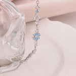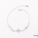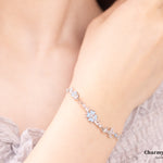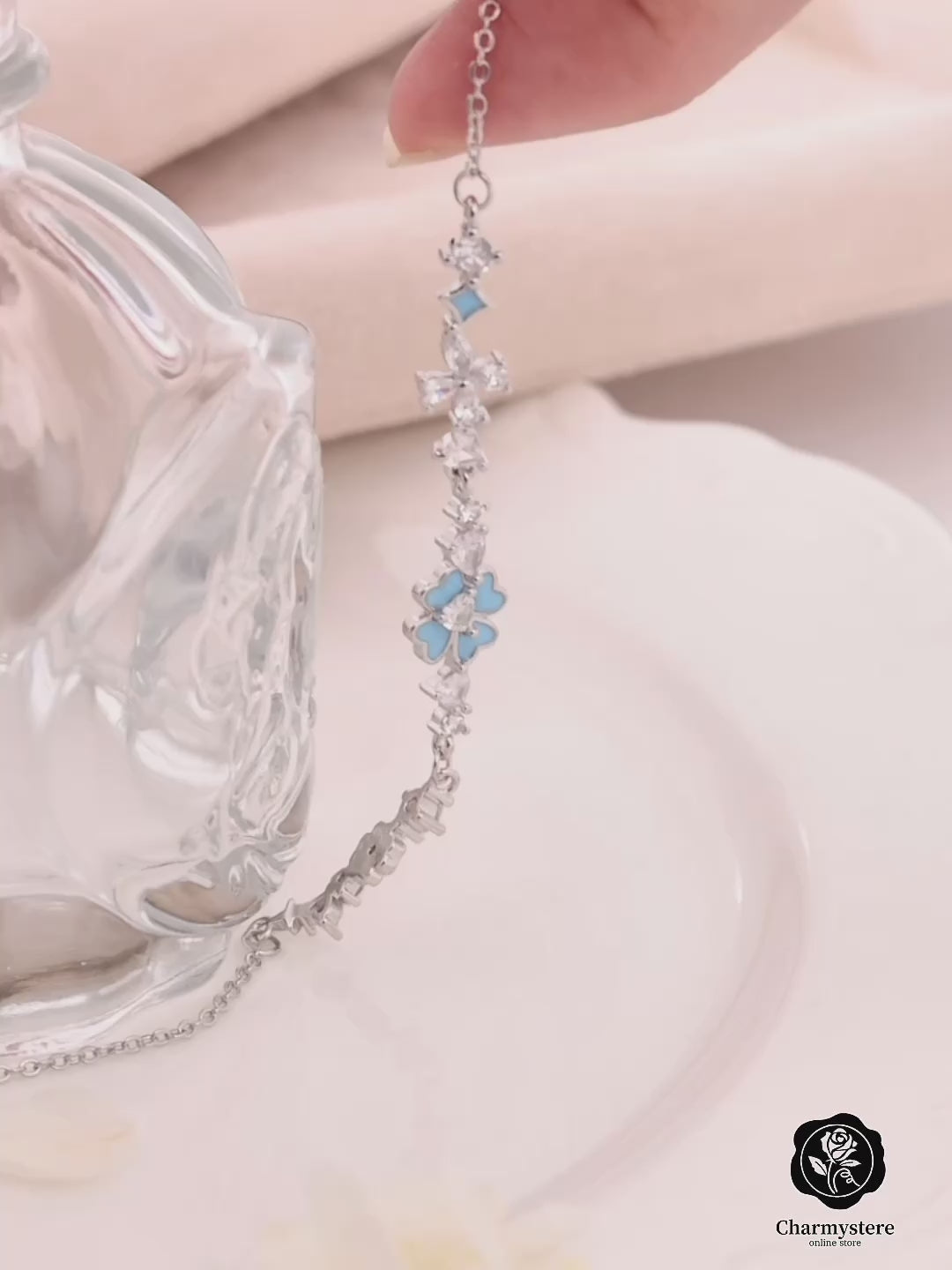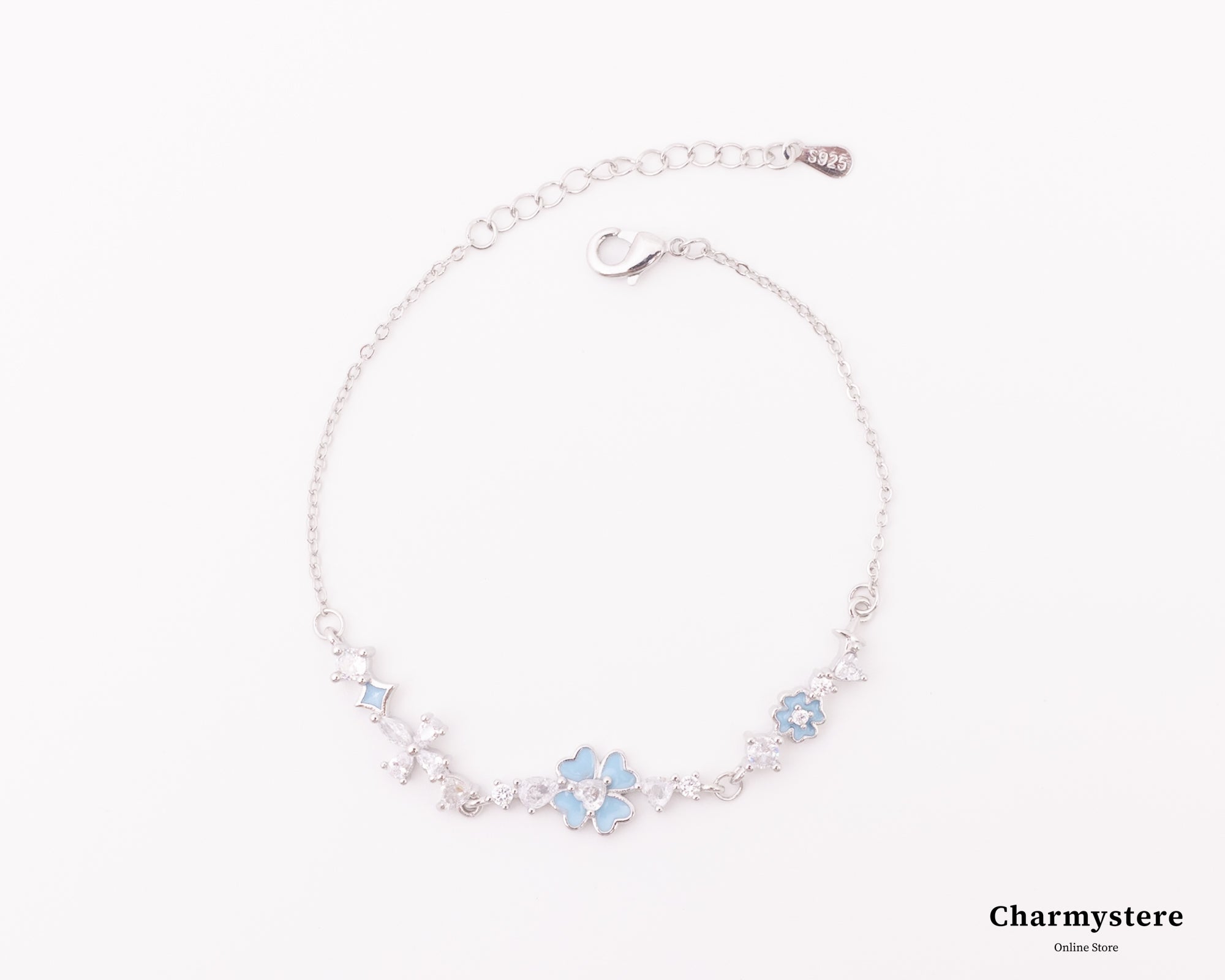ブルーの爽やかなカラーに合わせた華やかラインのブレスレット。ライン状にモチーフとビジューなストーンが散りばめられ、手元を美しく演出。