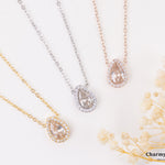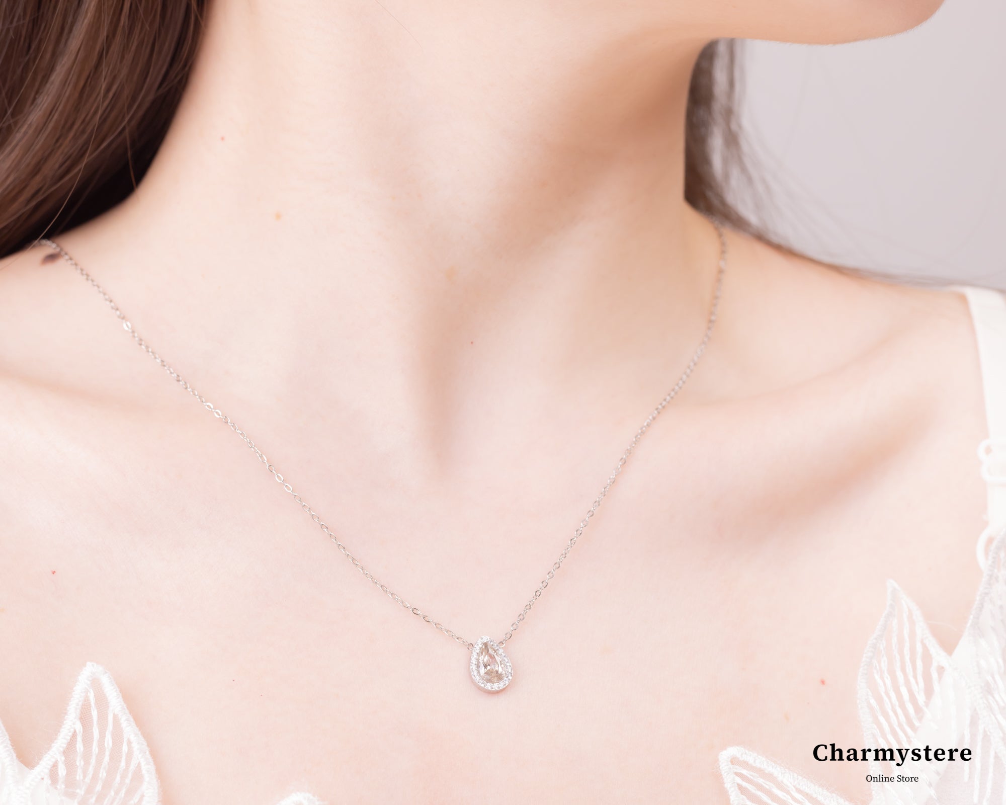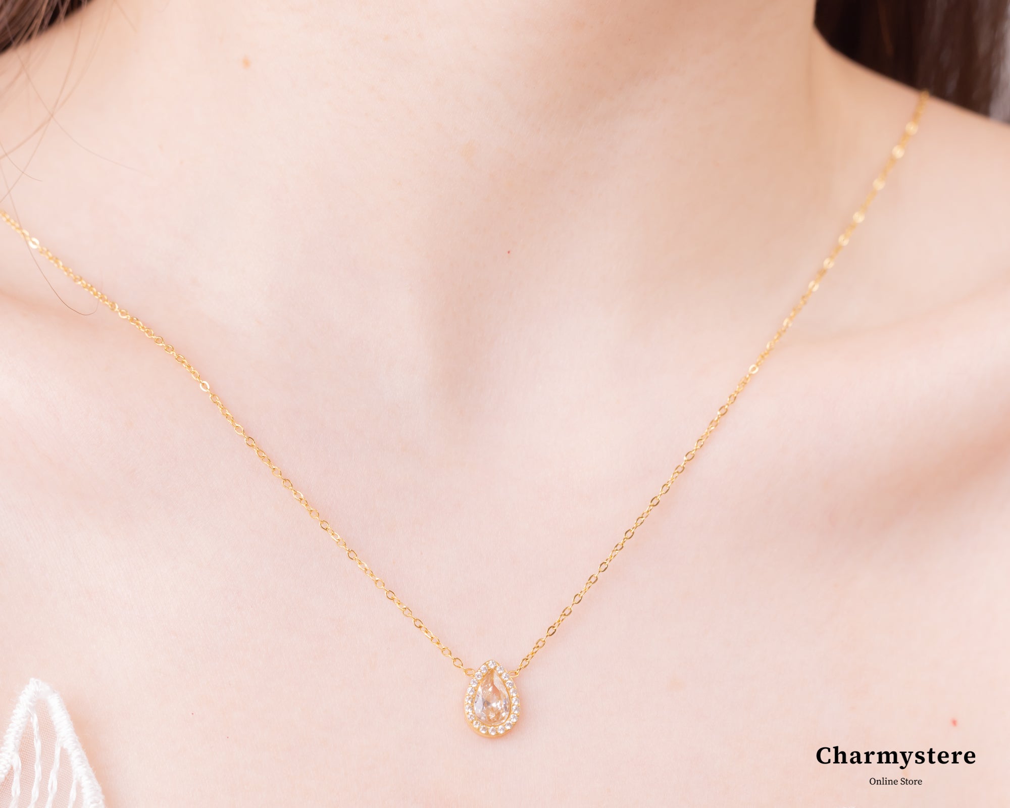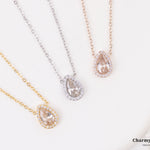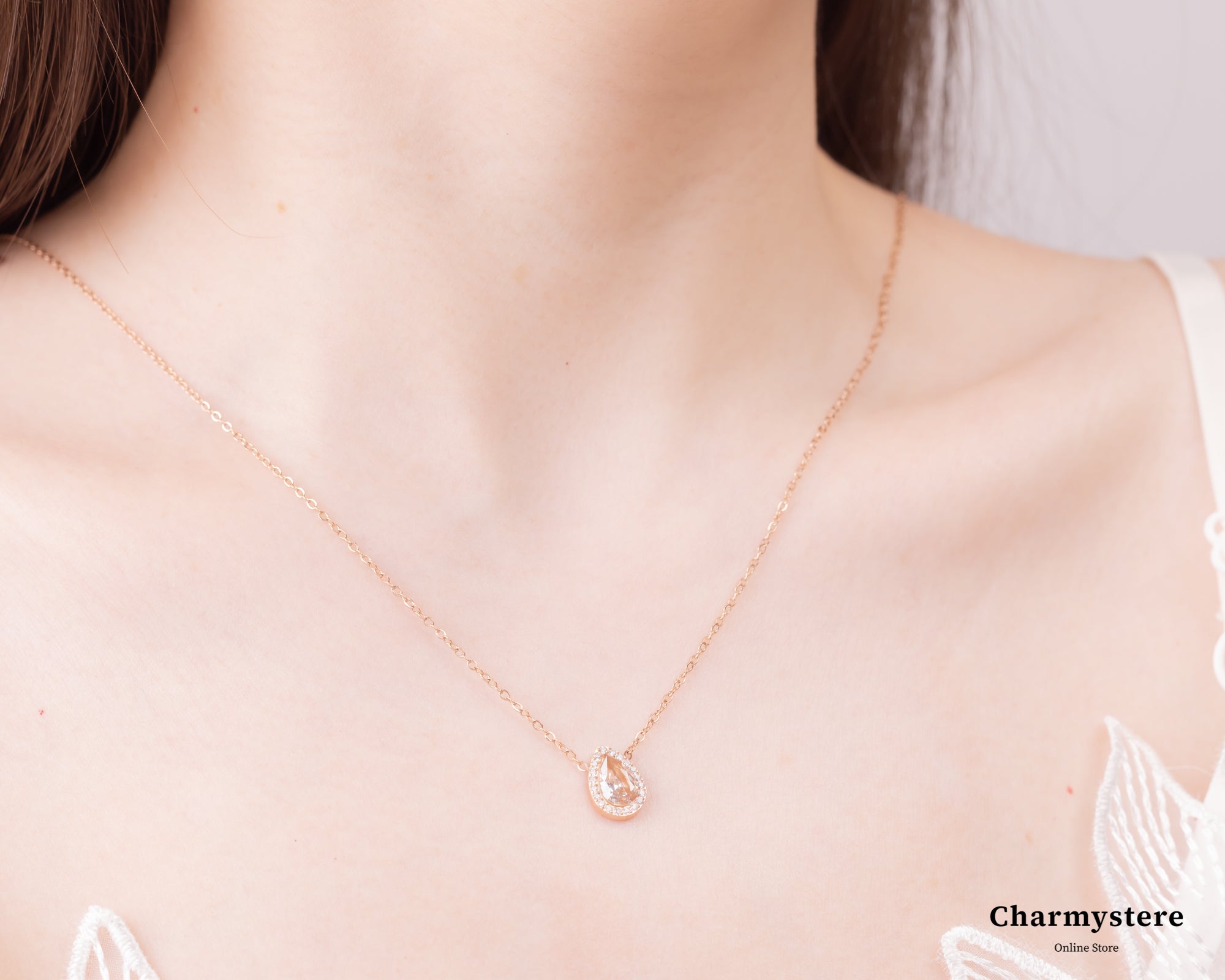 美しいテドロップ型のネックレス。シンプルで無駄のない洗練されたデザインが、首元に優雅さと華やかさをプラス。