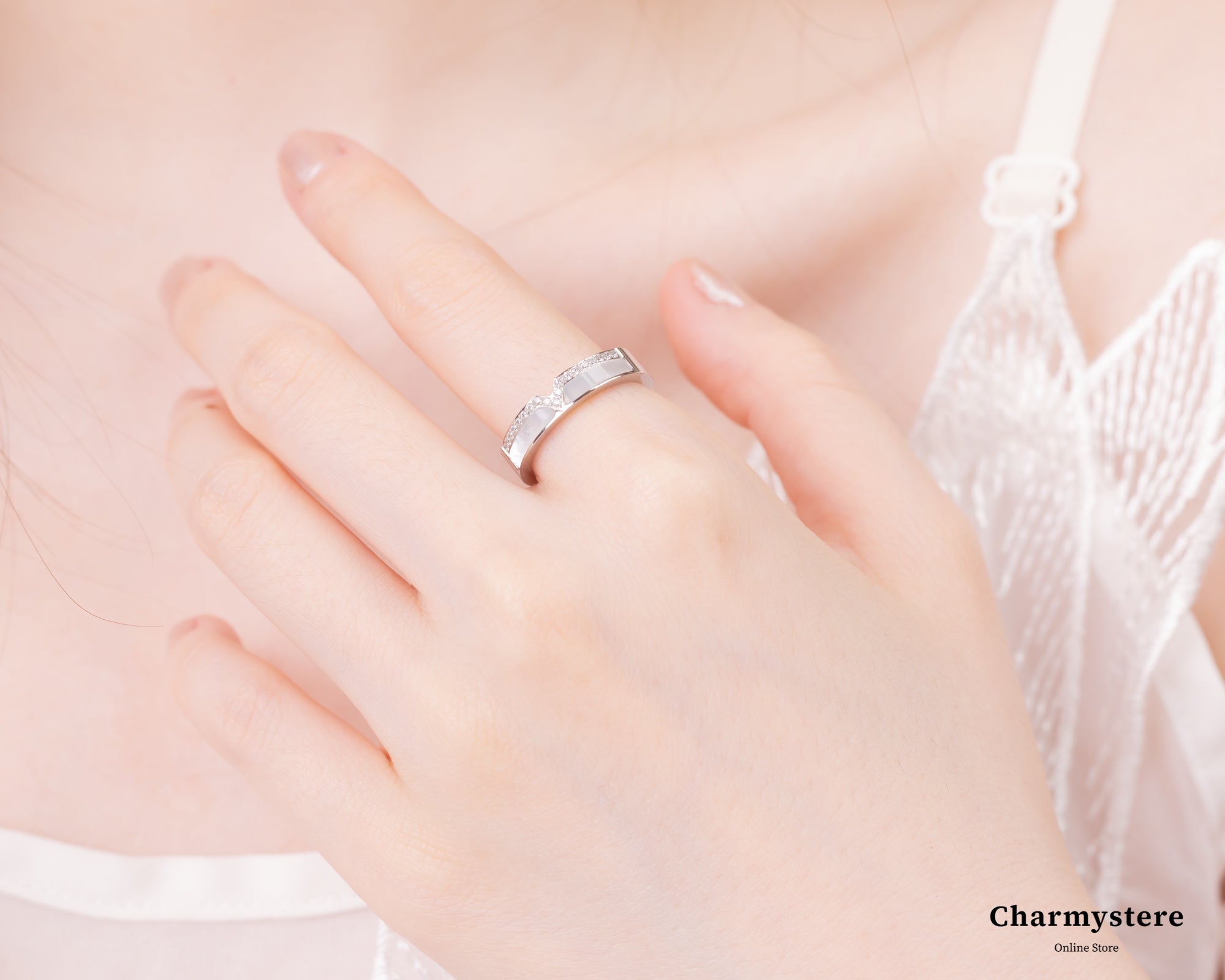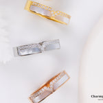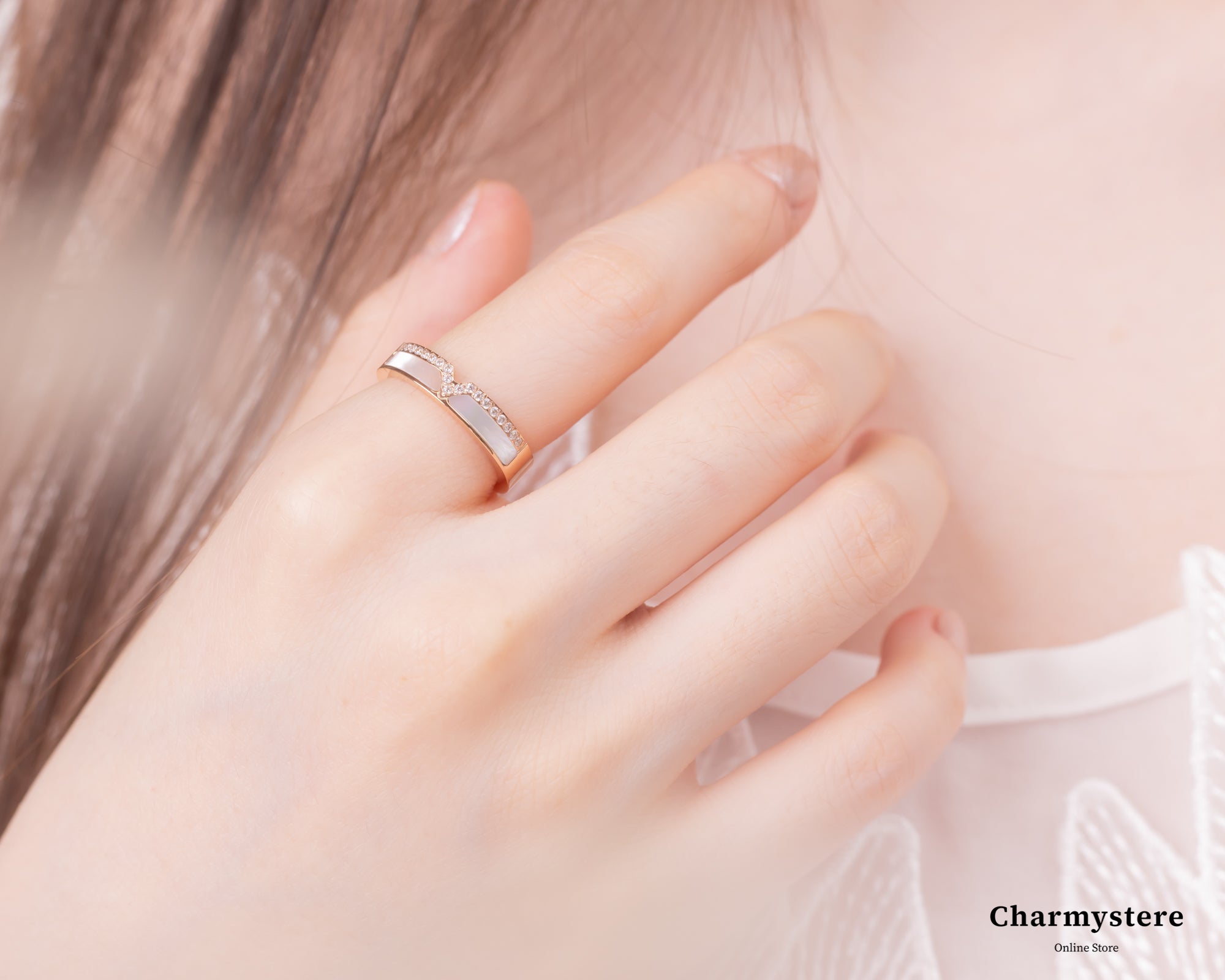 艶やかで光沢のあるシェルを使ったリング。角度によって艶やかさが現れ、手元をよりいっそうと美しい印象に。
