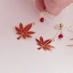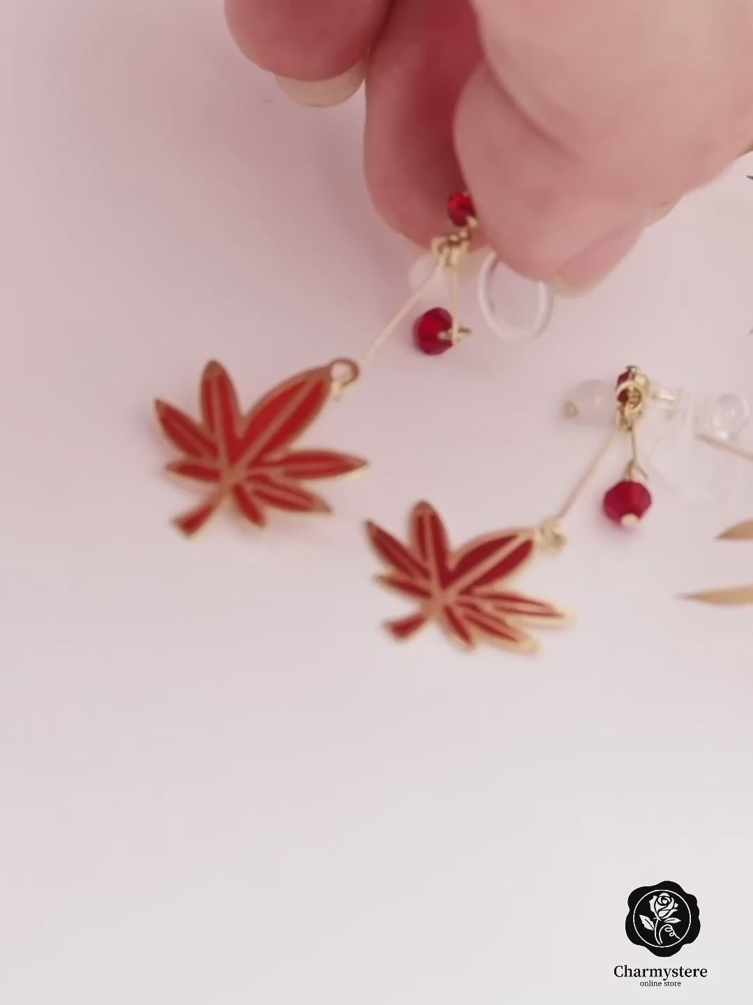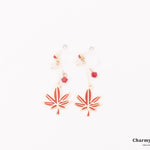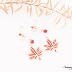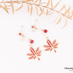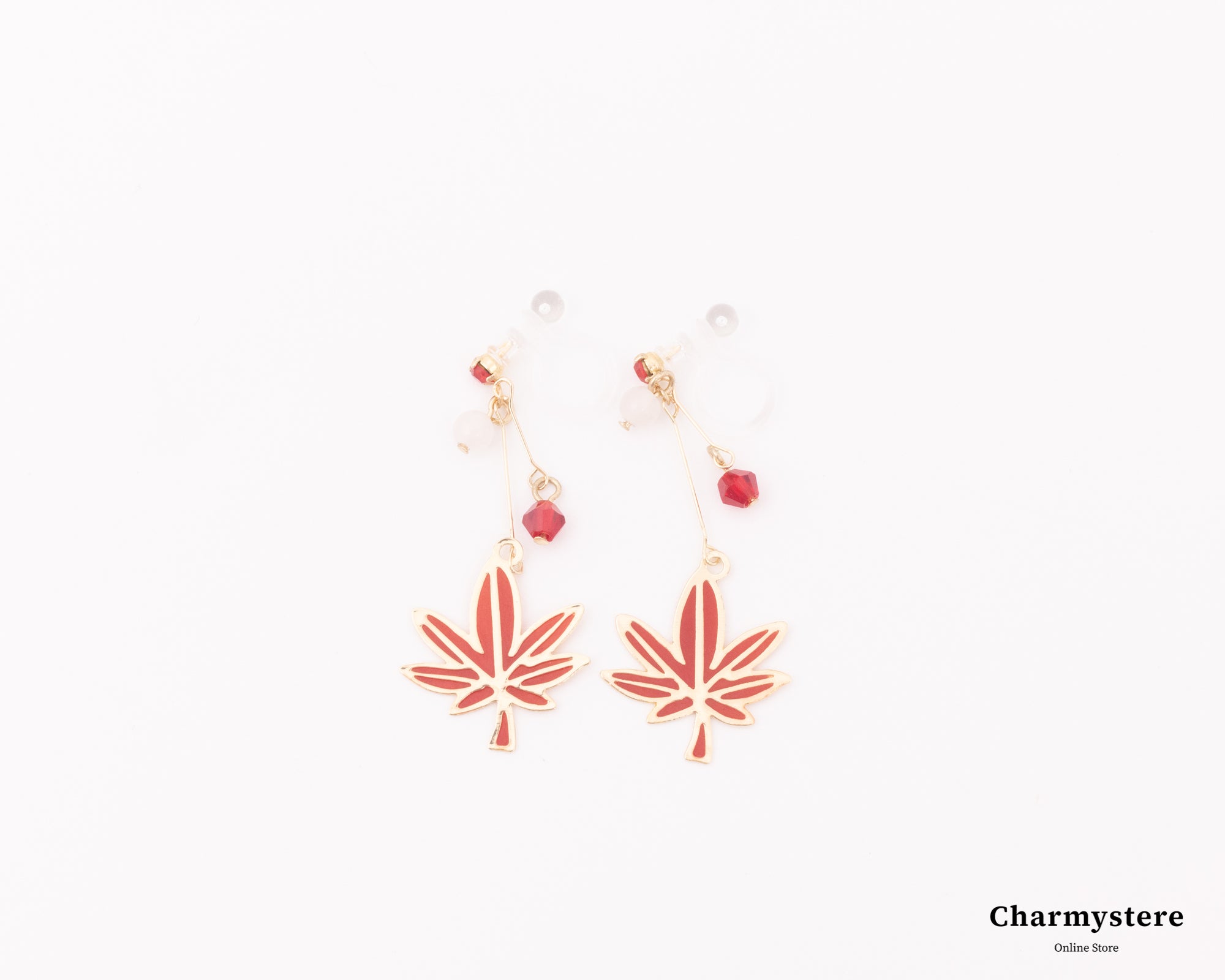 秋を彩る紅葉をモチーフにした秋らしいデザインのイヤリング。動くたびにモチーフがゆらゆらと揺れ、顔まわりを華やかに演出。