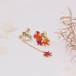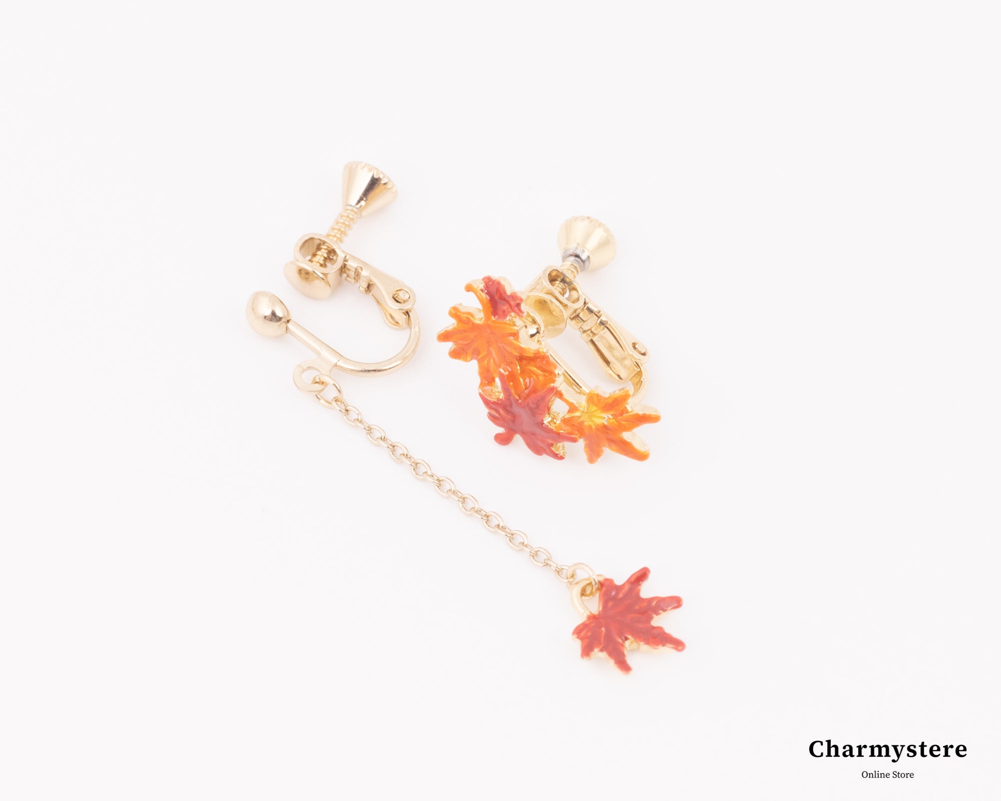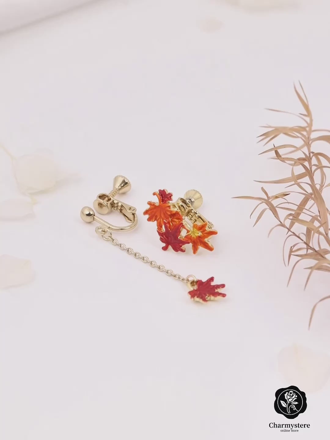 秋を彩る紅葉をイメージした秋らしい落ち着いたカラーでありながら華やかなアシンメトリーデザイン。左右違ったデザインでスタイリッシュな印象に。