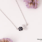 ブラックカラーで染めた一輪のローズがデコルテに煌めくネックレス。