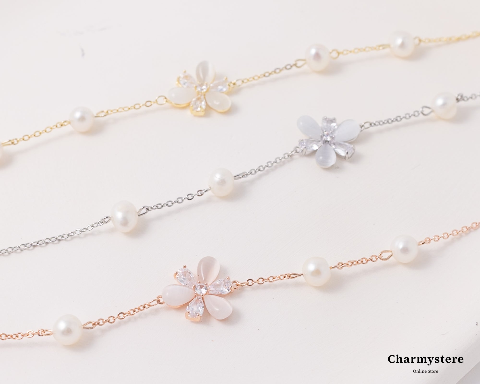 花を纏うアクセサリーで春をお迎え🌷 待ちに待った春。暖かい風が心地良い季節に。冬の寒さが和らぎ、色とりどりの花が咲き始めるこの時期は、新しいことに挑戦したり、自分自身をアップデートしたりするのにぴったりのタイミング! そんな春の訪れを、もっと身近に感じコーデに取り入れてみて。 そんなCharmystereの新作は春の花々をモチーフにしたアクセサリーたち。   【ピアスで】耳元で揺れる、可憐な春の花耳元を彩るのは、まるで本物の花びらのように繊細なピアスたち。お顔まわりに取り入れることによって表情をより一層華やかに演出してくれる🌸 【ブレスレット・リングで】指先に咲く、春色の花指先には、春色の花々を散りばめたリングを。シンプルなデザインから、華やかなデザインまで、豊富なバリエーションをご用意。お気に入りのリングを身に着ければ、ふとしたときに指先を見て、そのたびに心が弾む。 【ネックレスで】デコルテに飾る、春の花束を。繊細なチェーンと、きらめく花のモチーフが、あなたのデコルテを美しく彩り春を感じる☘️シンプルな装いにプラスするだけで、一気に春らしい華やかな印象に。 花を纏って、新しい季節へ春のアクセサリーは、身に着けるだけで心がときめき、春の訪れを感じさせてくれる。   フラワーモチーフ一覧はこちら←