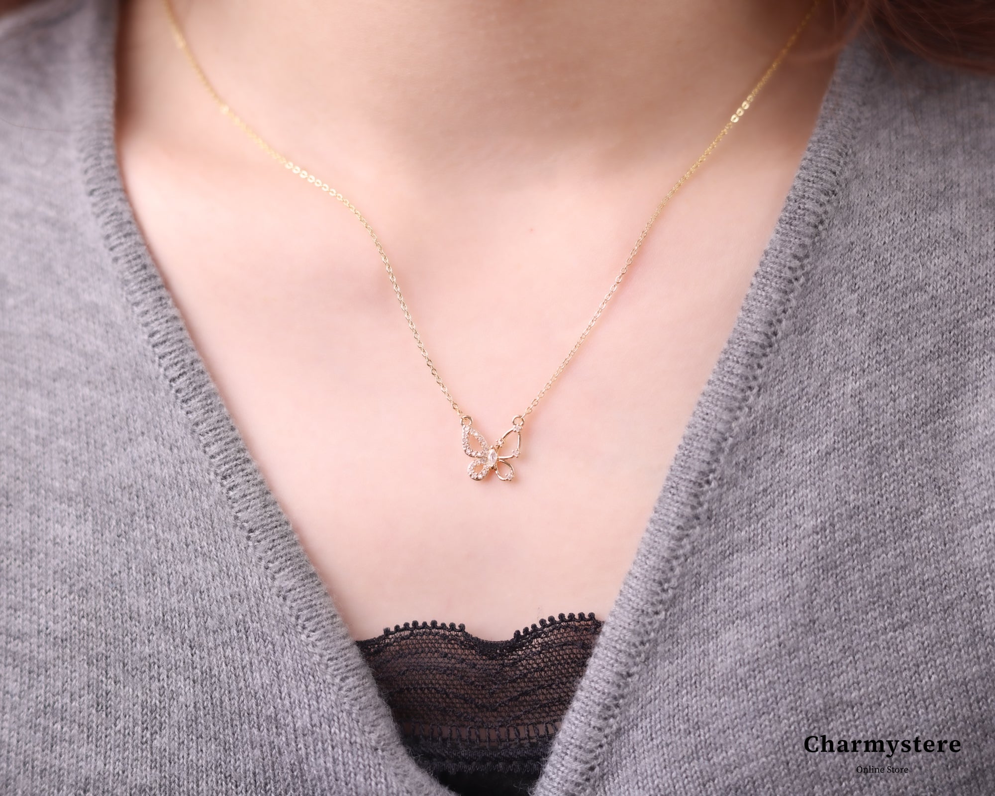 アシンメトリーバタフライネックレス