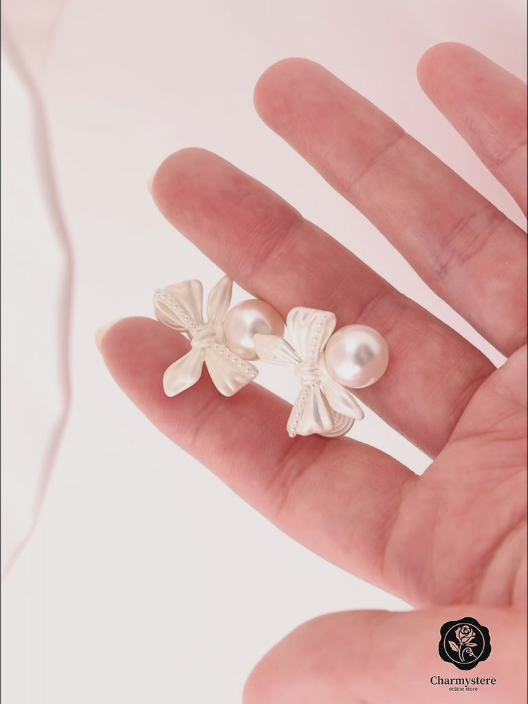 リボンパールクラッシーイヤリング