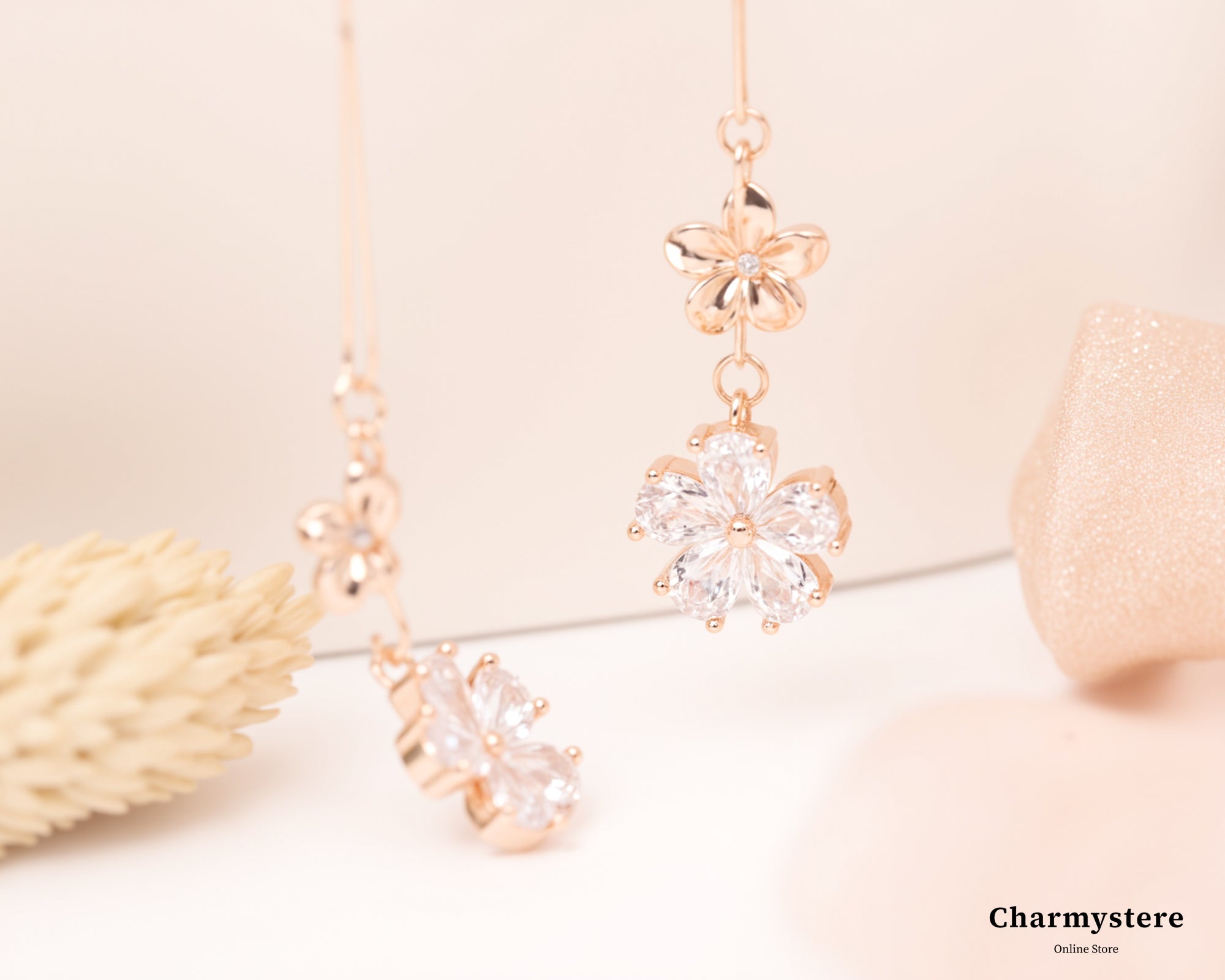 花を纏うアクセサリーで春をお迎え🌷 待ちに待った春。暖かい風が心地良い季節に。冬の寒さが和らぎ、色とりどりの花が咲き始めるこの時期は、新しいことに挑戦したり、自分自身をアップデートしたりするのにぴったりのタイミング! そんな春の訪れを、もっと身近に感じコーデに取り入れてみて。 そんなCharmystereの新作は春の花々をモチーフにしたアクセサリーたち。   【ピアスで】耳元で揺れる、可憐な春の花耳元を彩るのは、まるで本物の花びらのように繊細なピアスたち。お顔まわりに取り入れることによって表情をより一層華やかに演出してくれる🌸 【ブレスレット・リングで】指先に咲く、春色の花指先には、春色の花々を散りばめたリングを。シンプルなデザインから、華やかなデザインまで、豊富なバリエーションをご用意。お気に入りのリングを身に着ければ、ふとしたときに指先を見て、そのたびに心が弾む。 【ネックレスで】デコルテに飾る、春の花束を。繊細なチェーンと、きらめく花のモチーフが、あなたのデコルテを美しく彩り春を感じる☘️シンプルな装いにプラスするだけで、一気に春らしい華やかな印象に。 花を纏って、新しい季節へ春のアクセサリーは、身に着けるだけで心がときめき、春の訪れを感じさせてくれる。   フラワーモチーフ一覧はこちら←