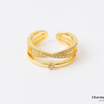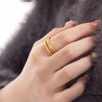 一つのリングでまるで重ねづけしたようなコーデになり、高見えとデザイン性を融合したおしゃれなアイテム。