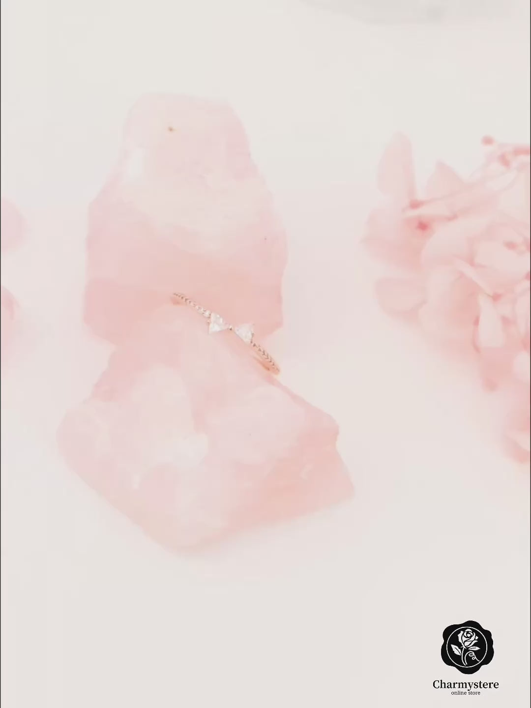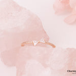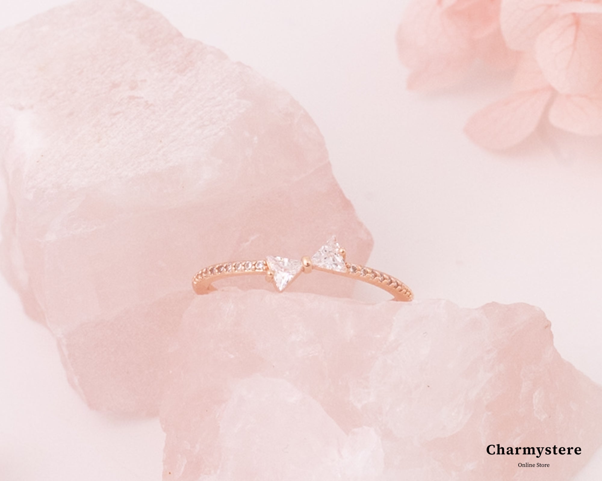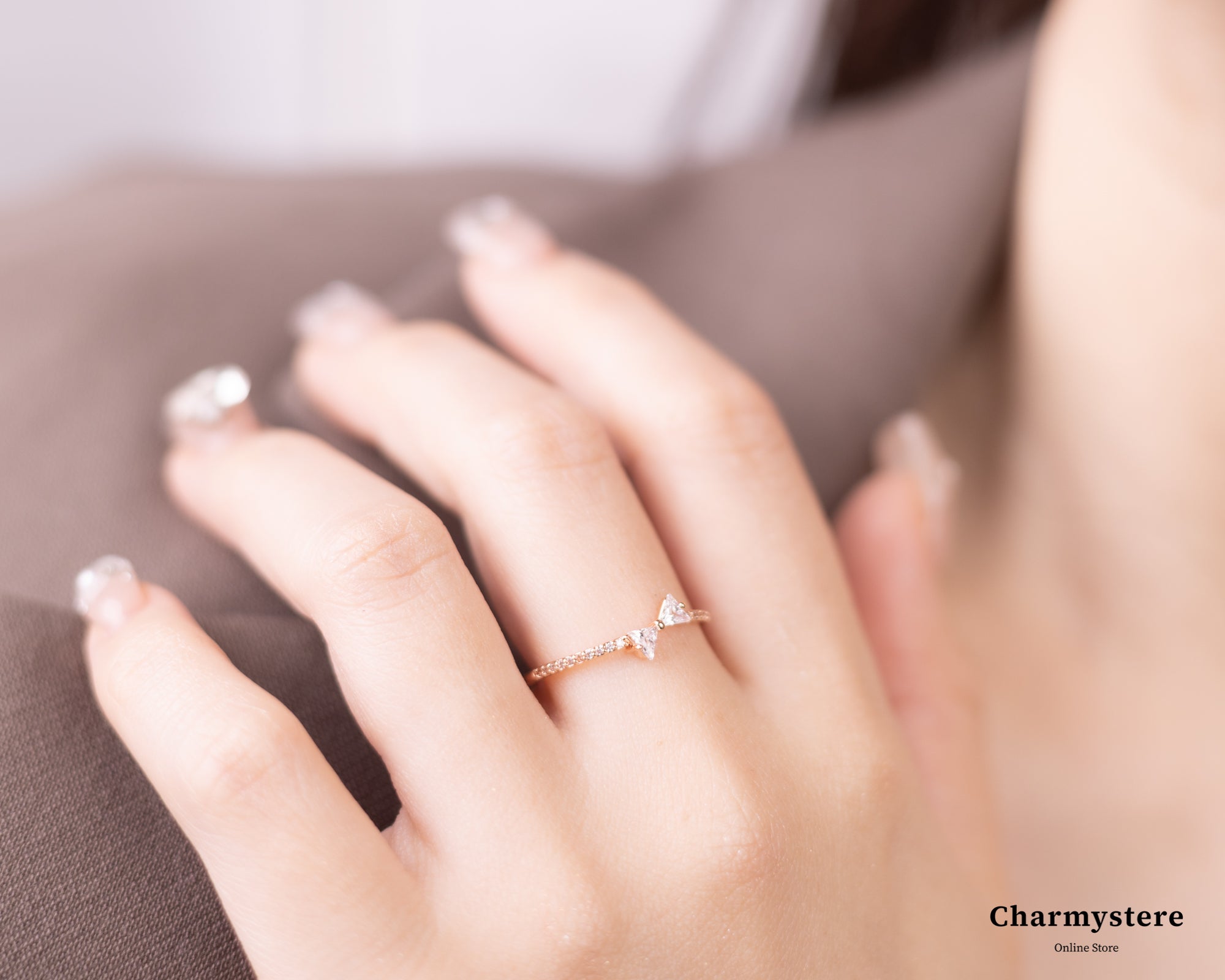 スクエアストーンを組み合わせキュートなリボンのモチーフに。手先を可愛らしさをプラスしながら上品で高見えするアイテムに。