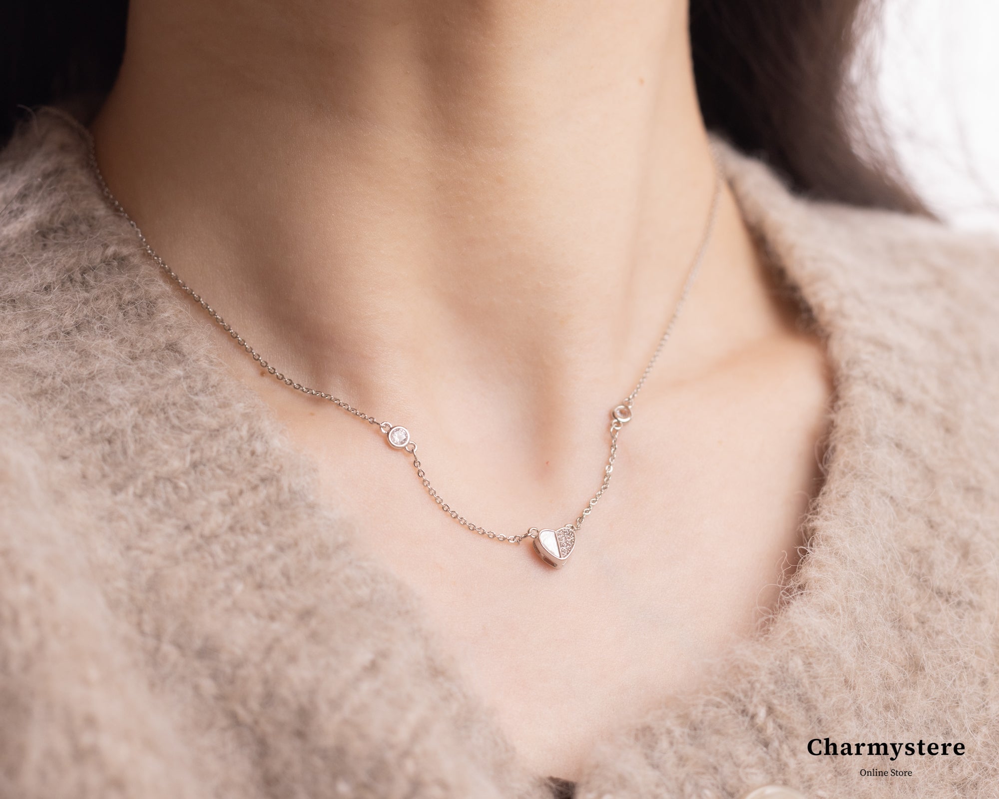 異なった2つの素材が組み合わさってハートが作られたロマンチックなアイテムに。