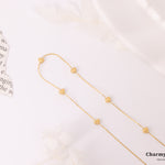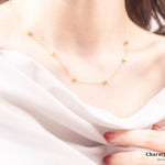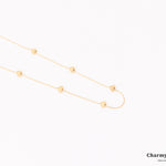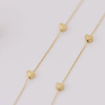 小粒でぷっくり立体感あるハートのモチーフがデコルテに沿って等間隔に散りばめられたデザイン。華奢なチェーンがさりげないおしゃれを演出し上品さと可愛らしさを兼ね備えた万能ネックレス。重ね着けにも◎