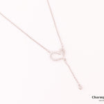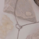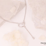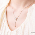 縦ラインでスタイルアップする上品なネックレス。ハートモチーフがデザインされコーデのアクセントに。