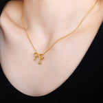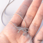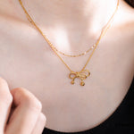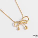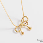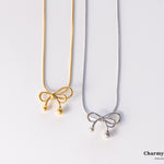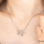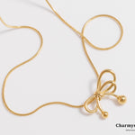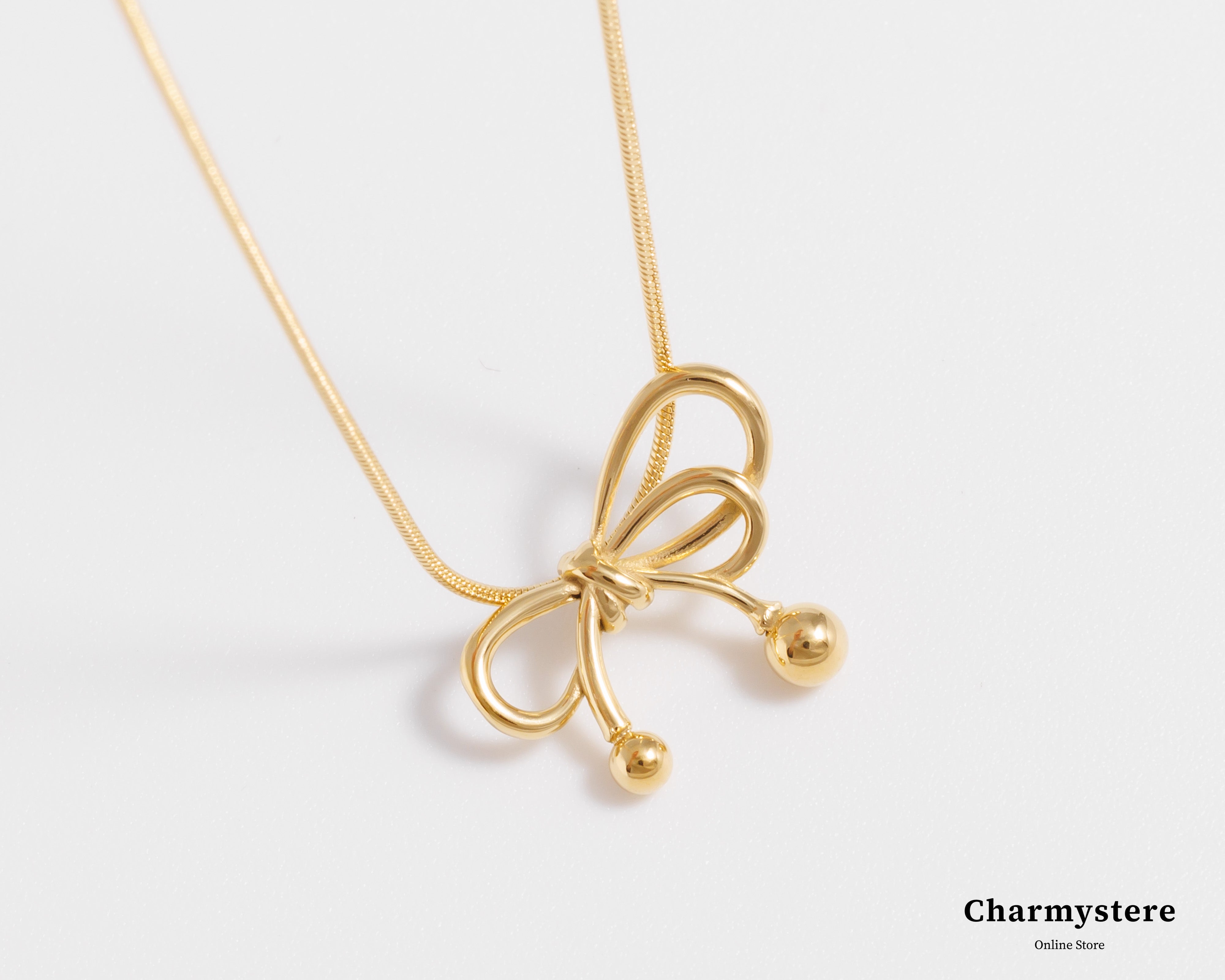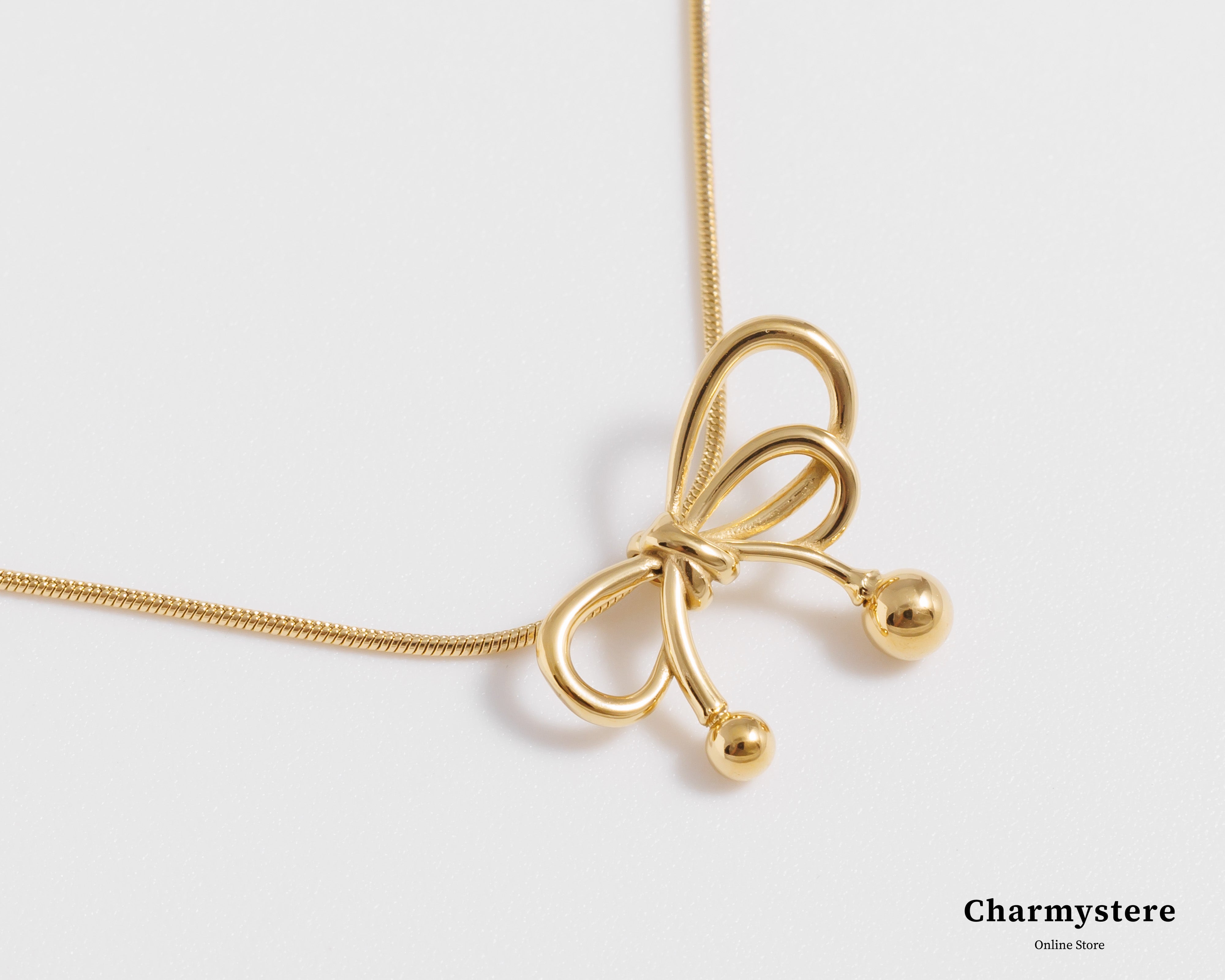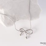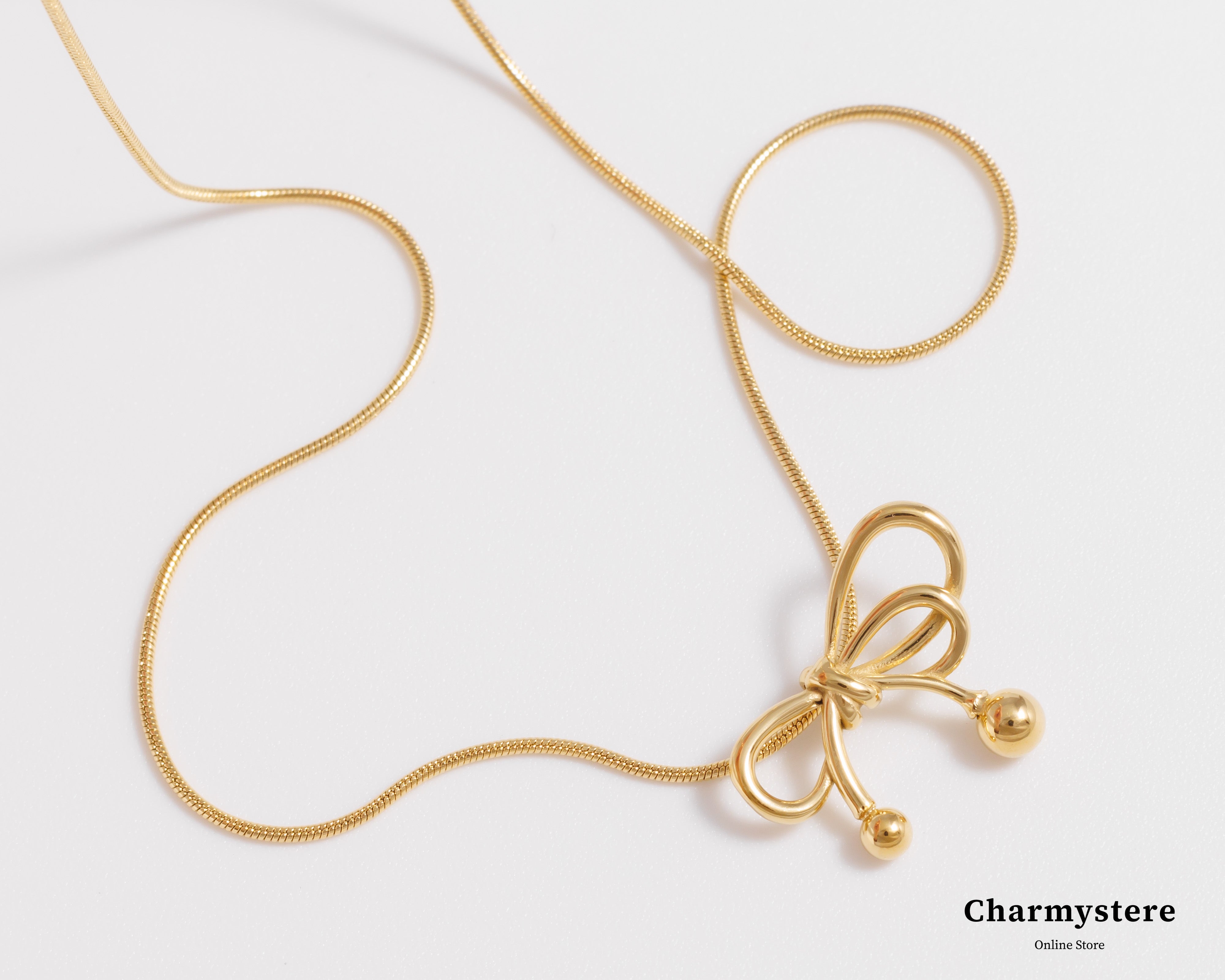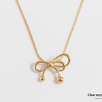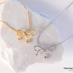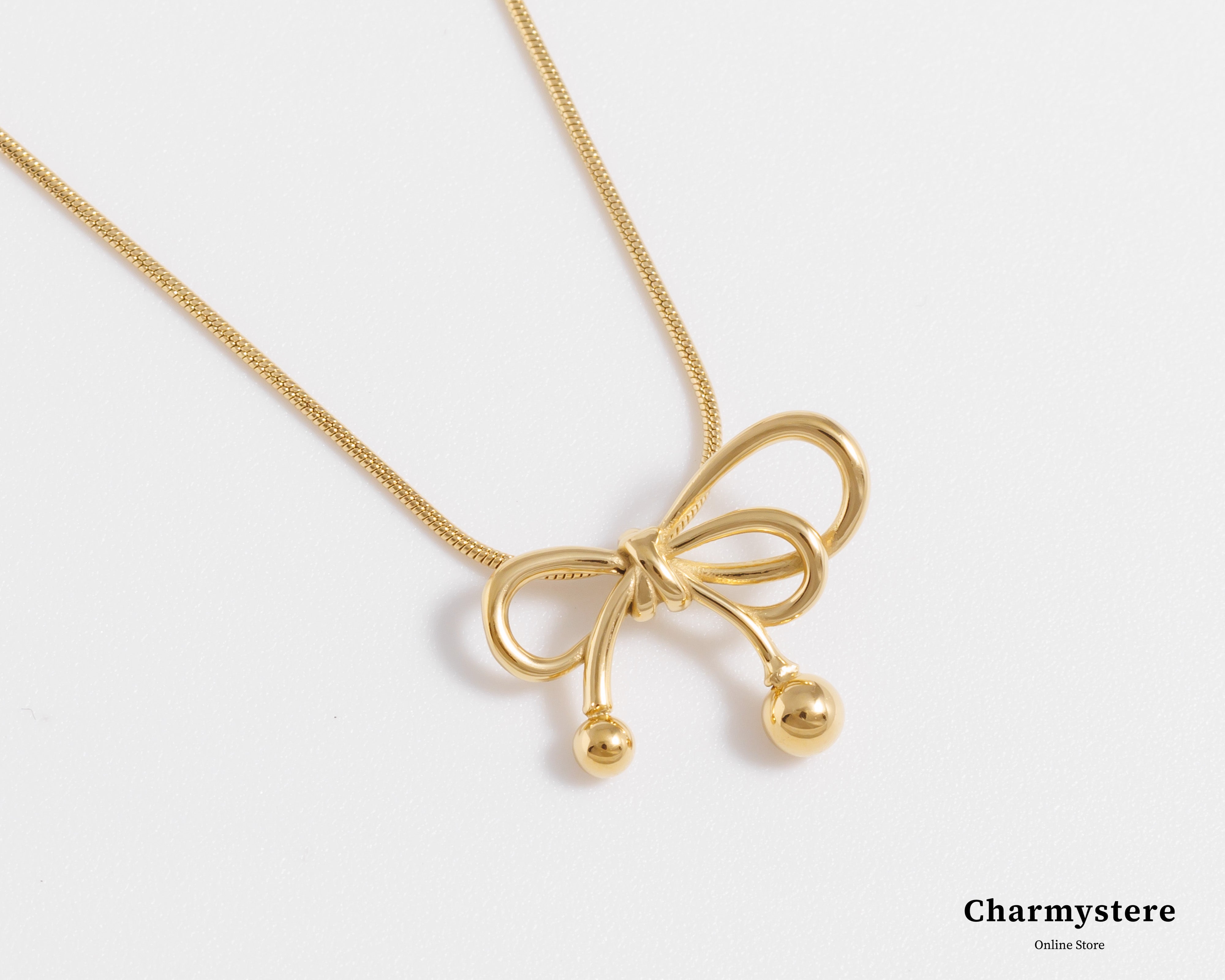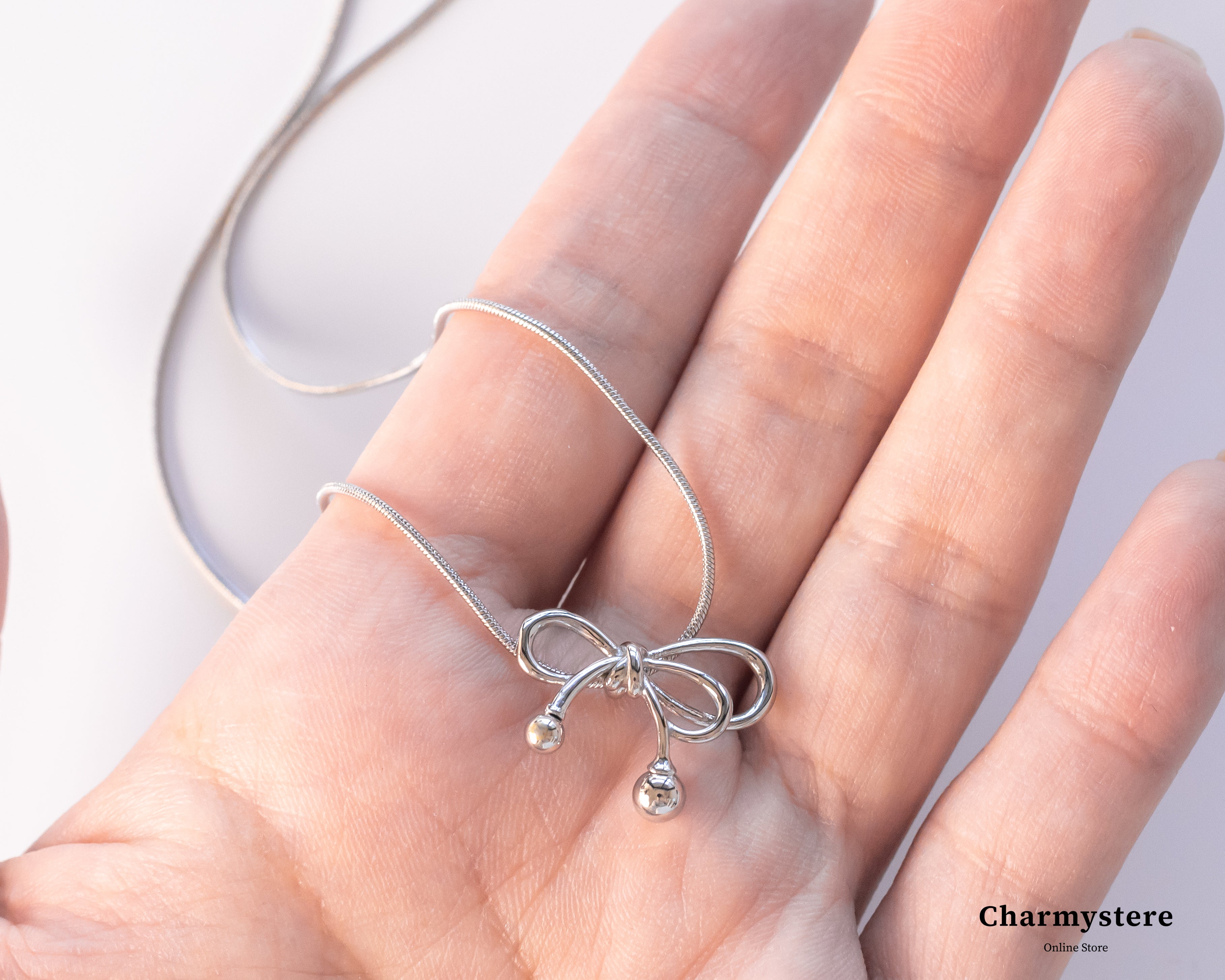 シンプルな質感のネックレスにリボンのデザインを組み合わせた大人可愛いアイテム。ファッションのアクセントに最適。