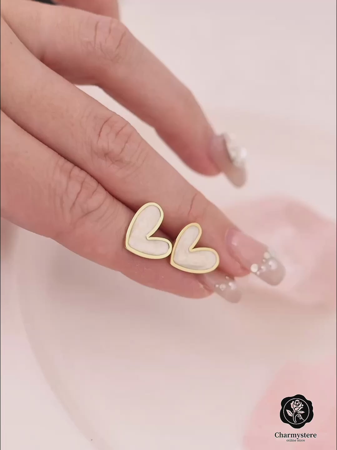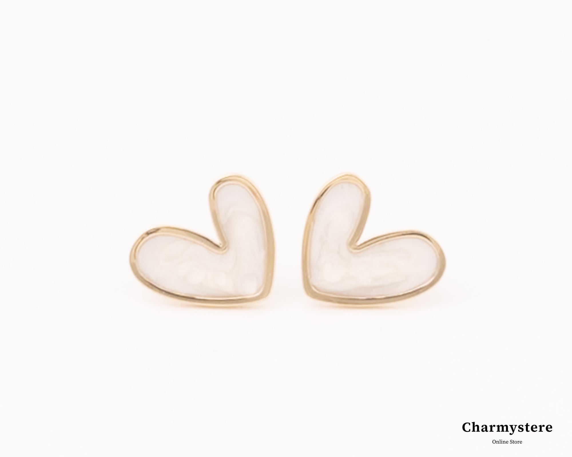 ホワイトなハートがキュートでフェミニンなピアス。ホワイトの色味を使うことで清楚感をプラス。■Color:Gold■素材:銅+金メッキ+琺瑯(ほうろう)+925シルバー(ポスト)