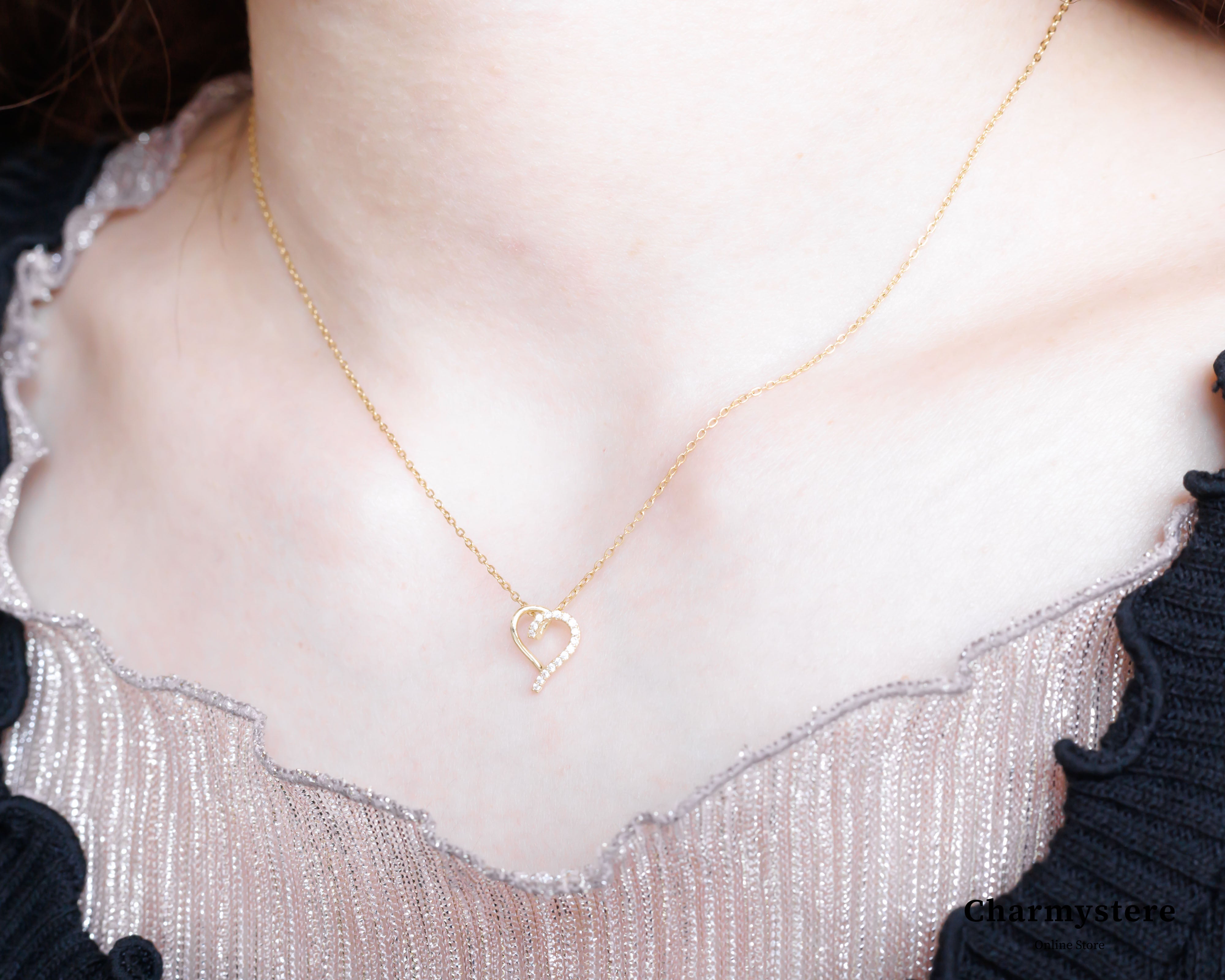 細く華奢で繊細なハートモチーフのネックレス。さりげなく大人可愛いを演出し、普段使いにも◎