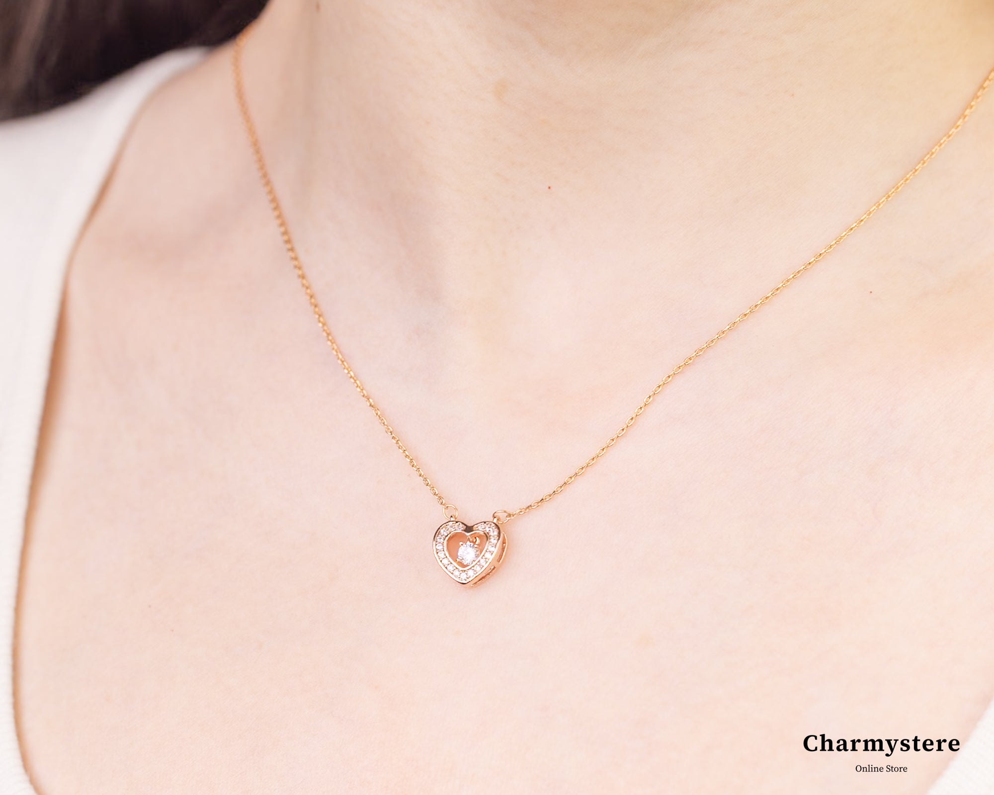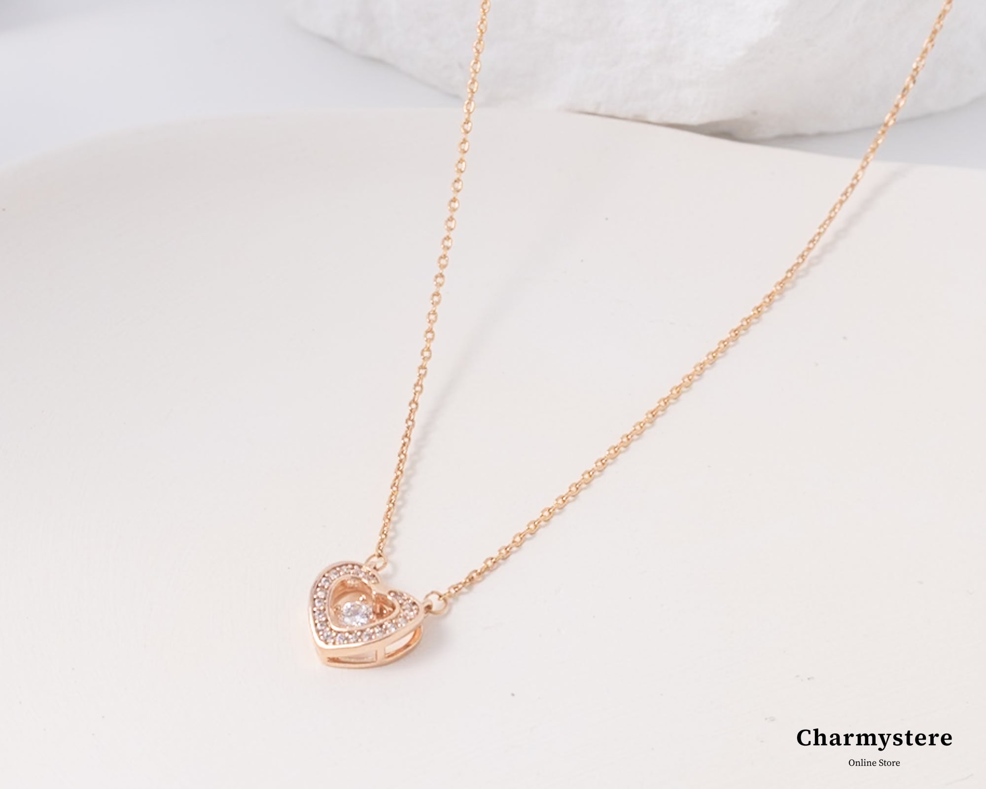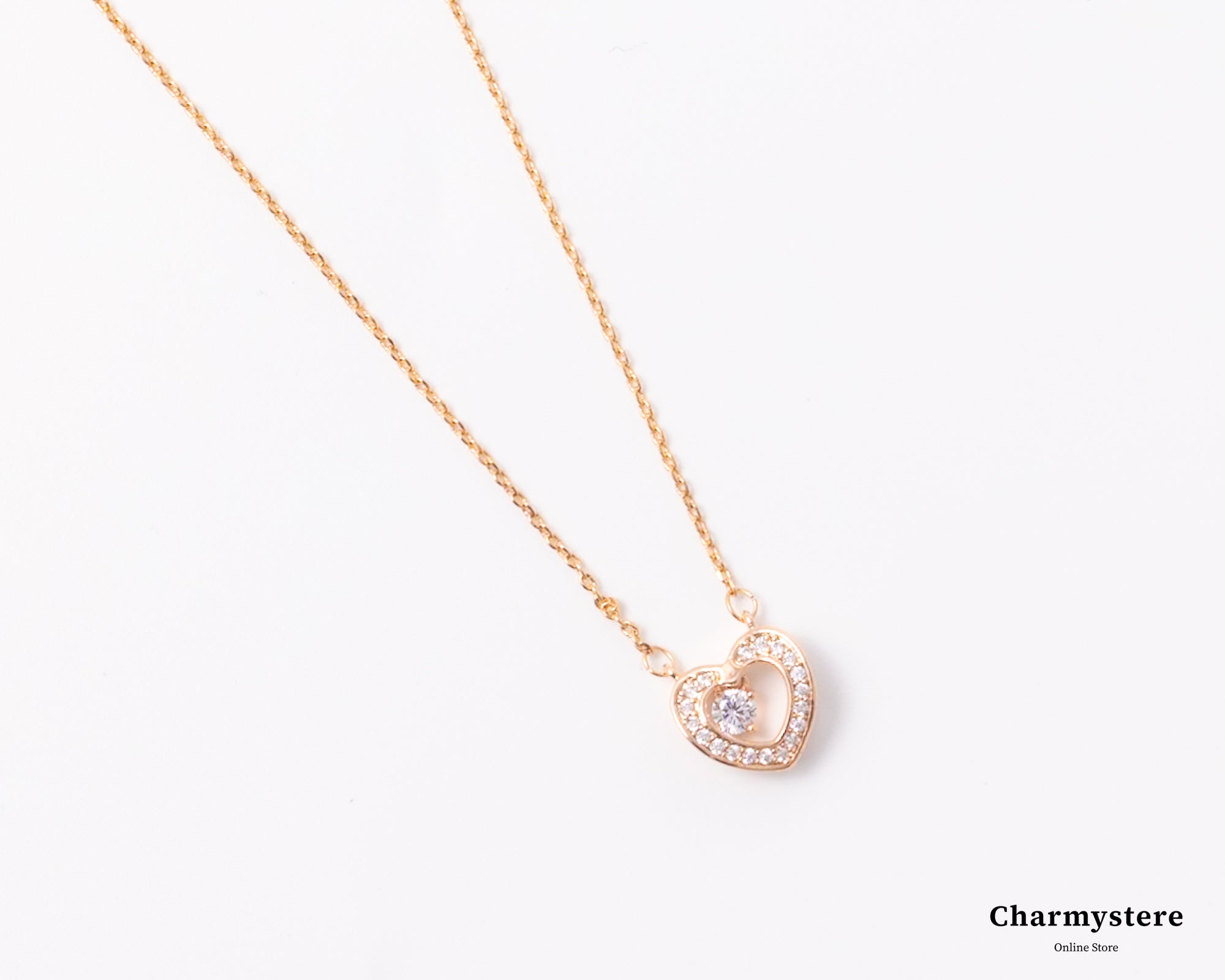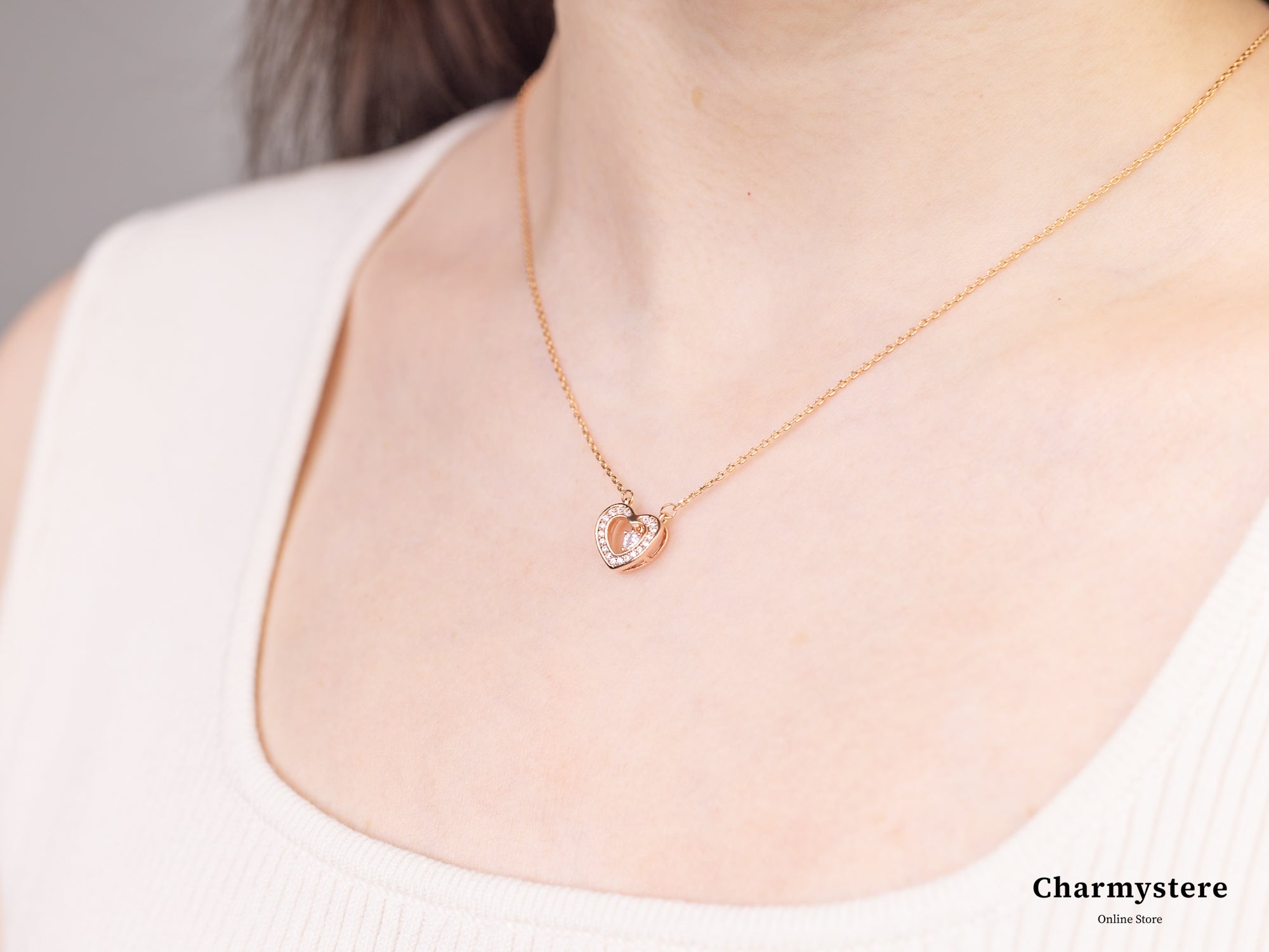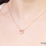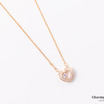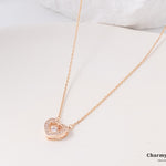 エレガントでロマンチックなデザインが特徴のローズゴールドハートペンダントネックレス。細身のローズゴールドチェーンに、美しいハートモチーフの中にストーンが揺れ、輝きます。