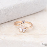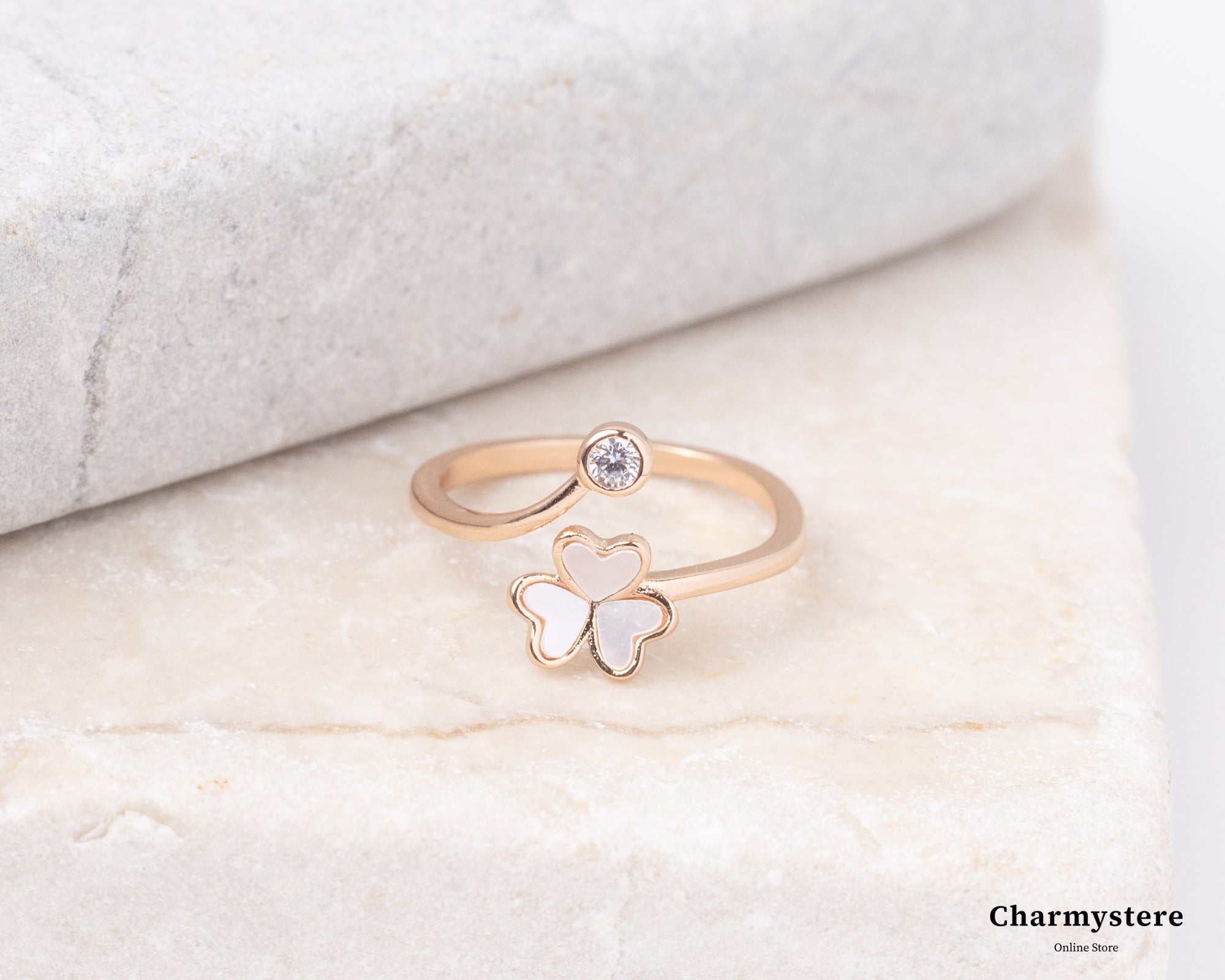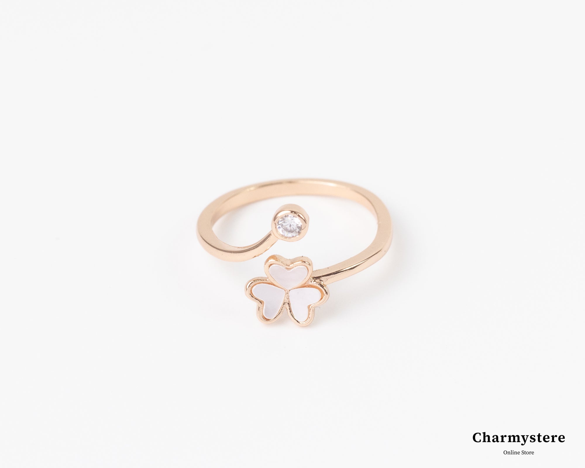 シェルのホワイトなクローバーモチーフが大人可愛いリング。