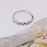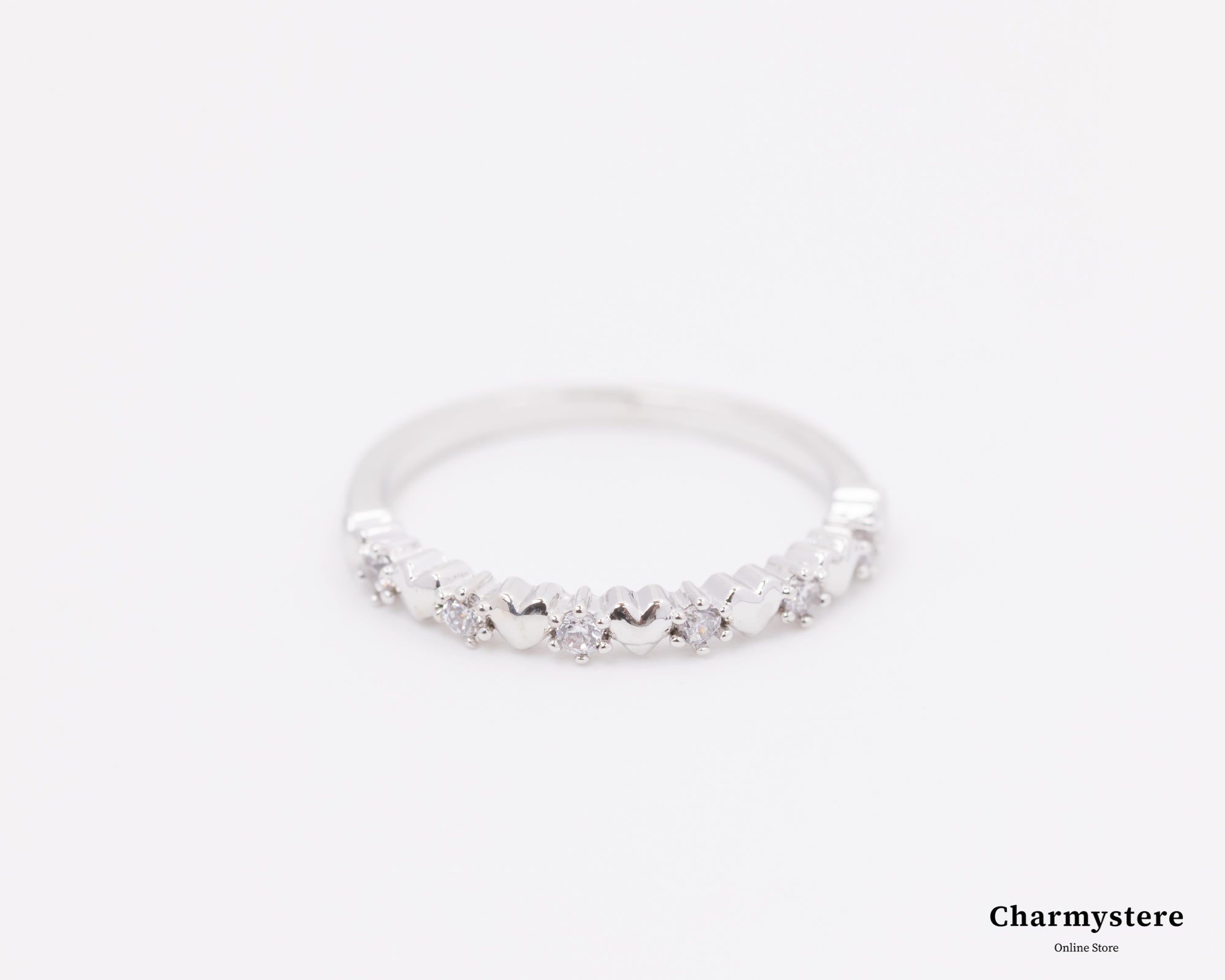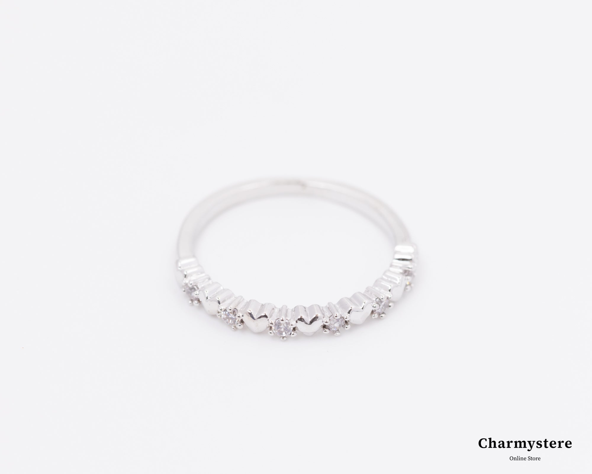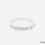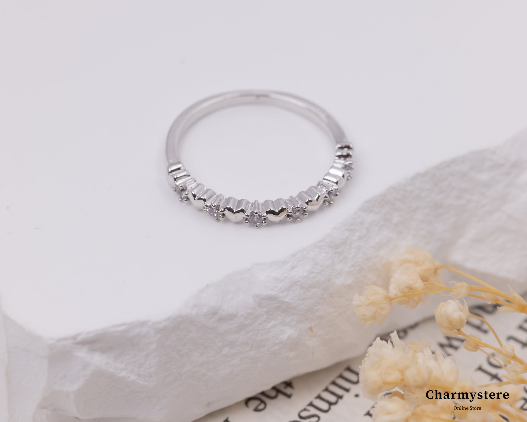 シンプルながらも洗練されたデザインのリング。手元にさりげない輝きをプラス。このリングは、一列に並んだ異なる形状のクリスタルが繊細に輝き、上品でモダンな印象を与えます。特別な日のおしゃれにも、日常のスタイルにもぴったりのアクセサリーです。