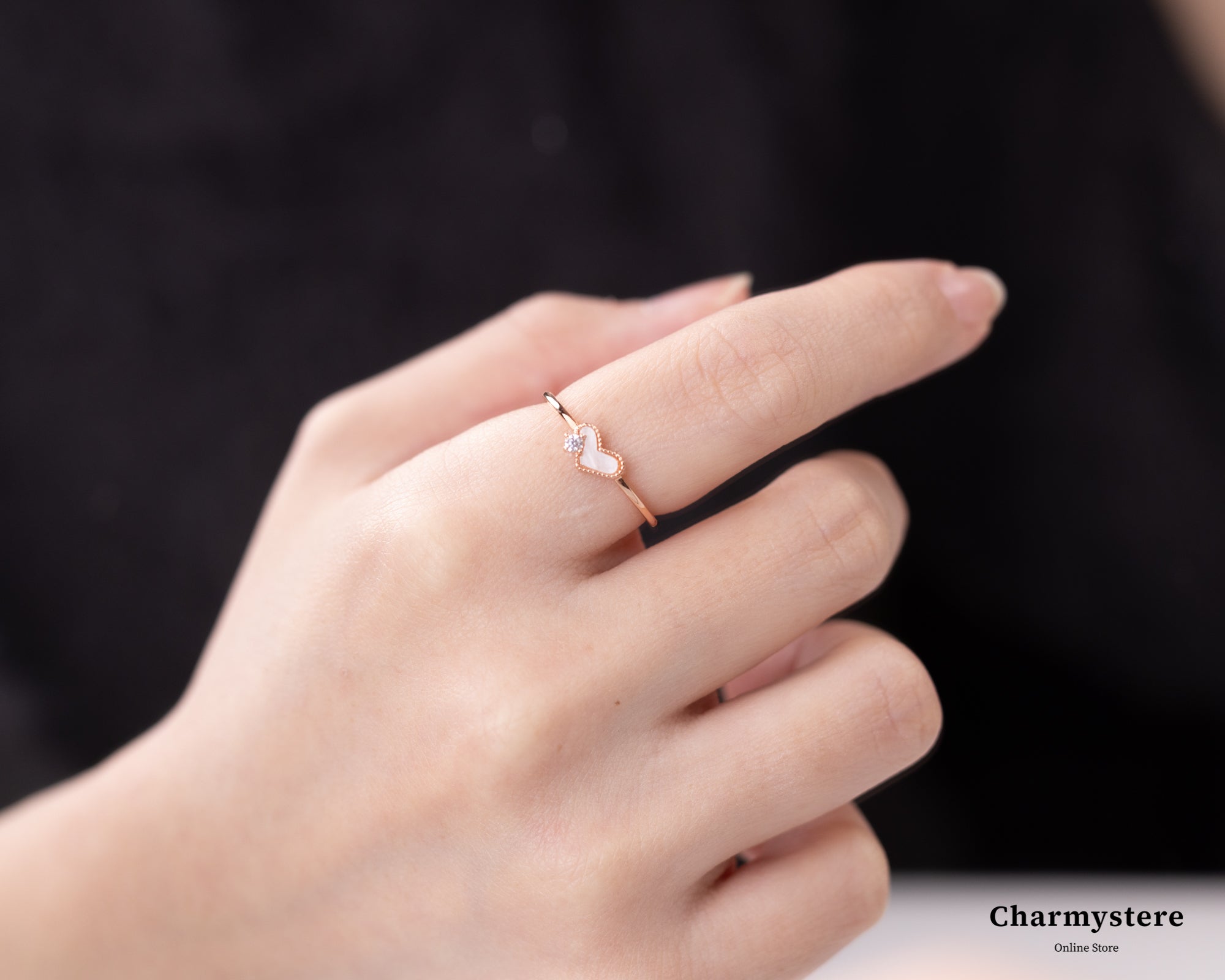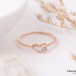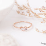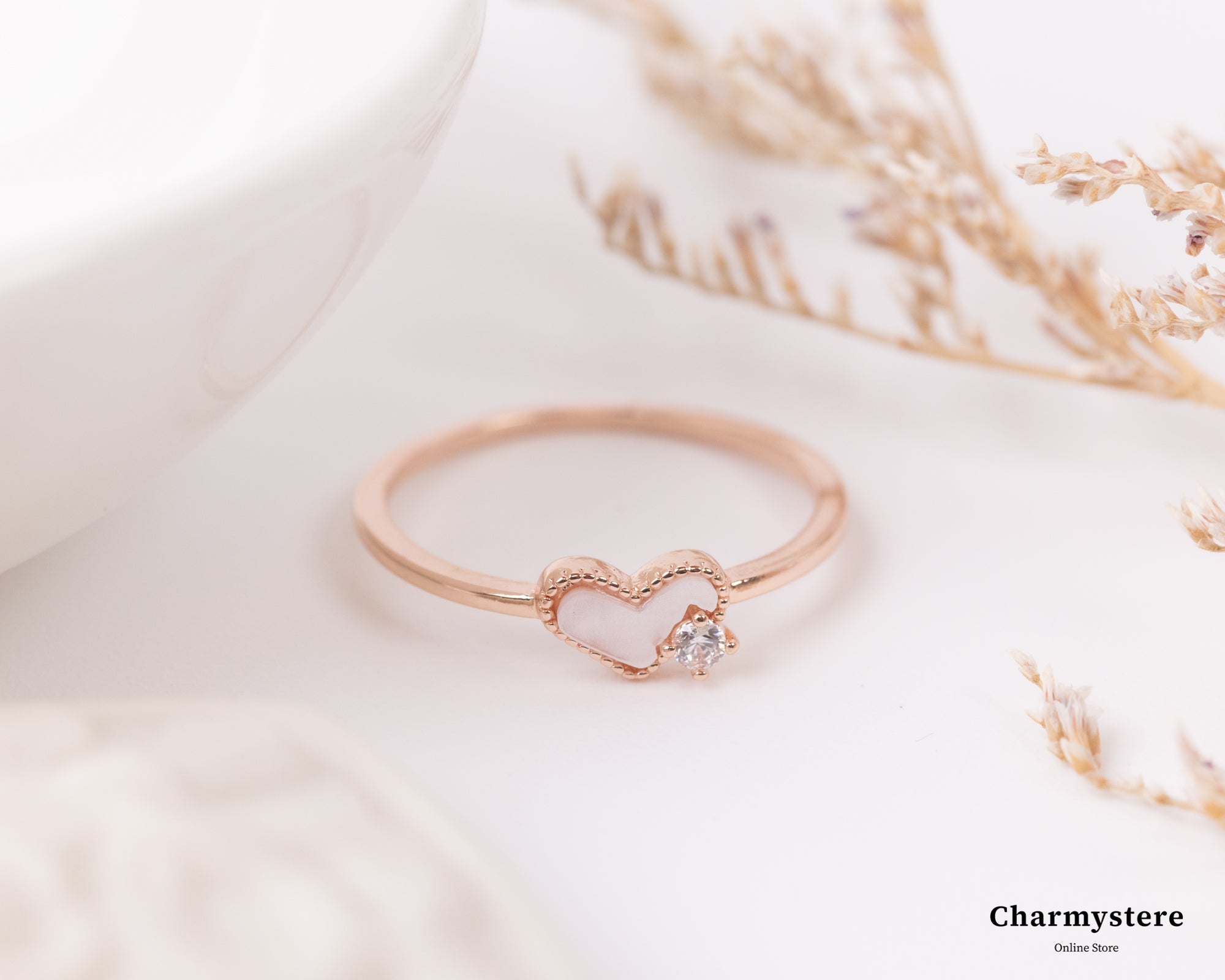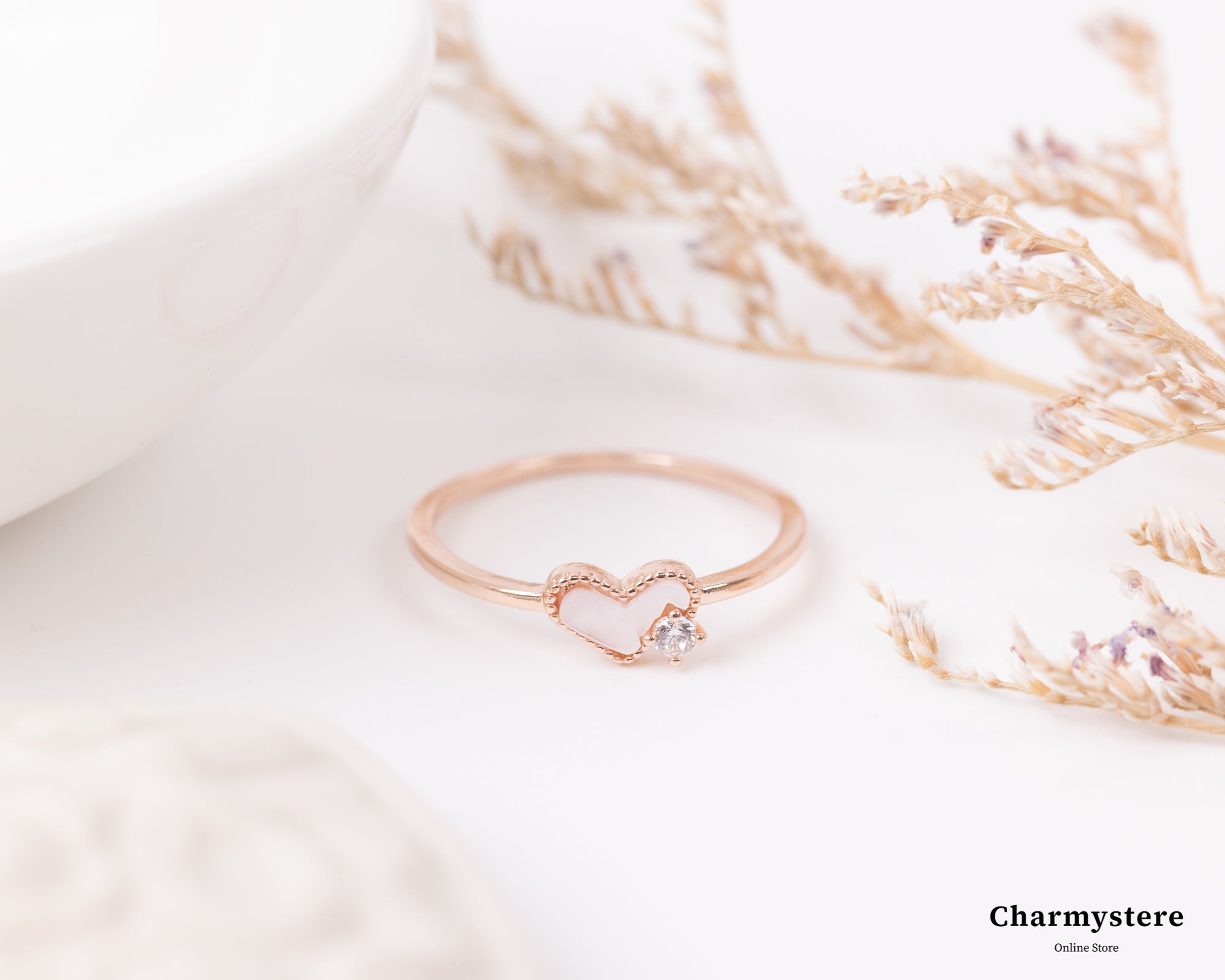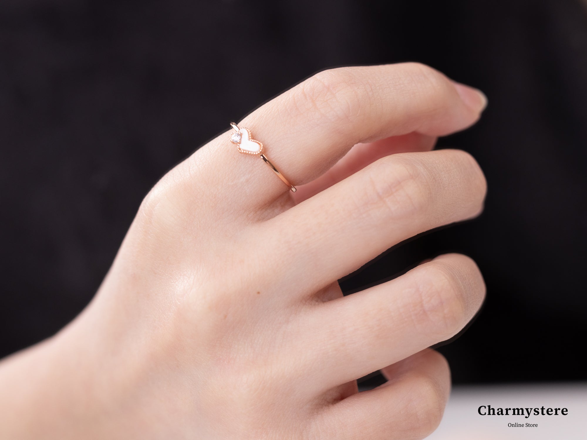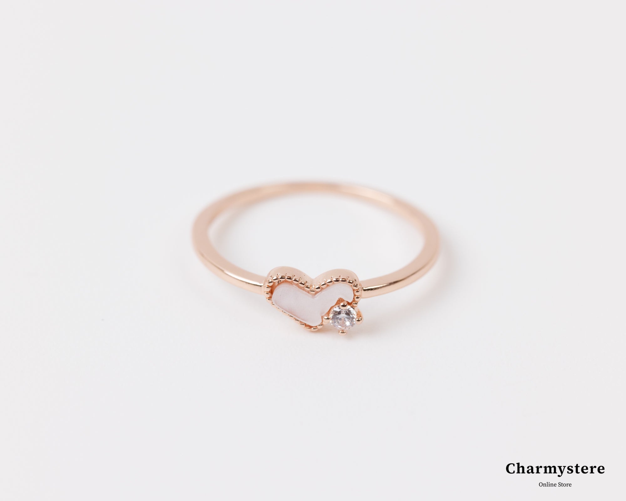ホワイトハートが上品なデザインリング。小粒なストーンがアクセントとなり、エレガントな印象に。