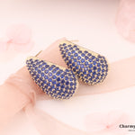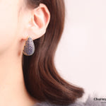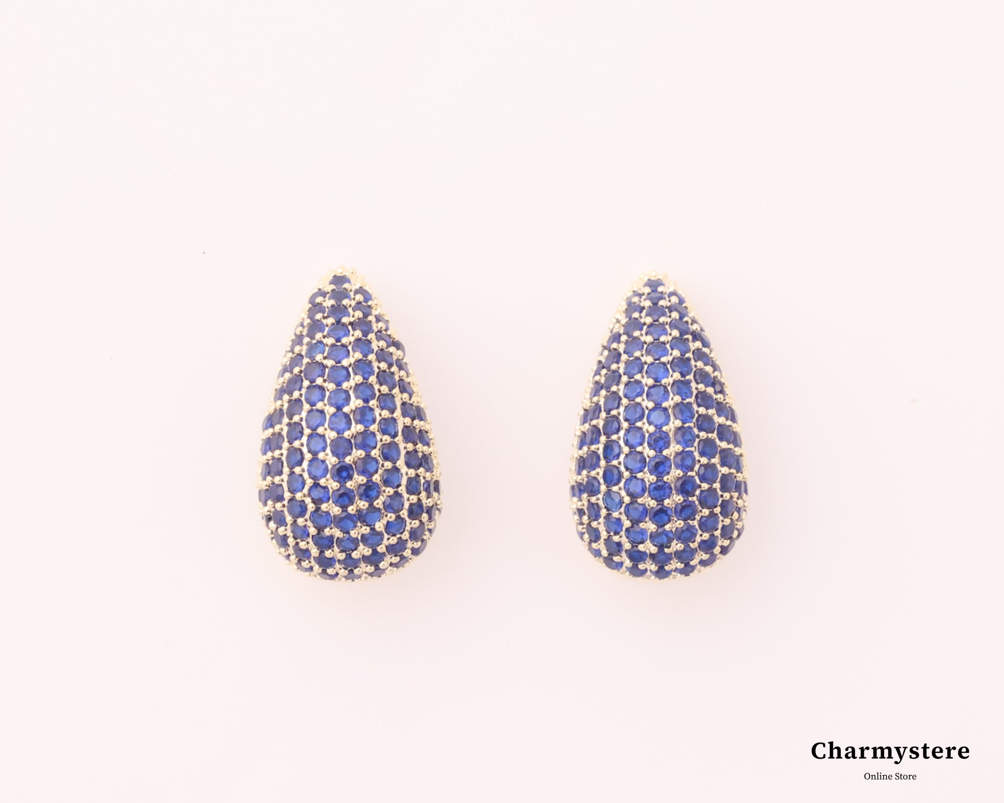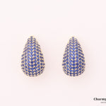 ブルーストーンが敷き詰められたビジューなデザイン。雫のシルエットで重厚感のある華やかなピアスに。
