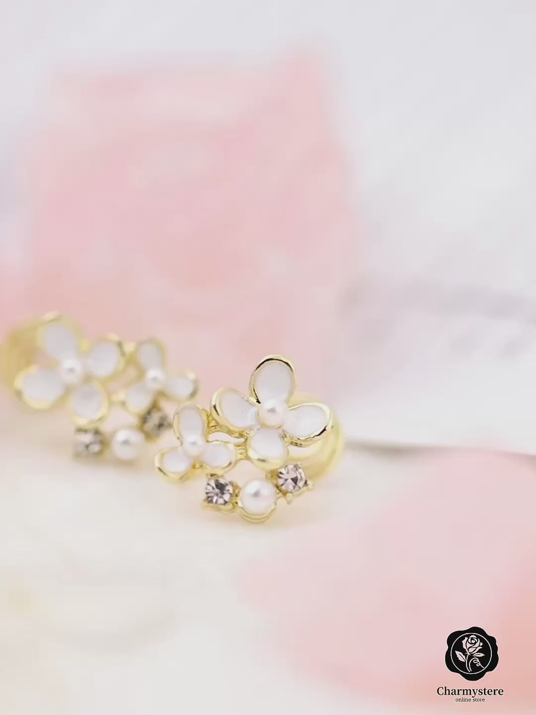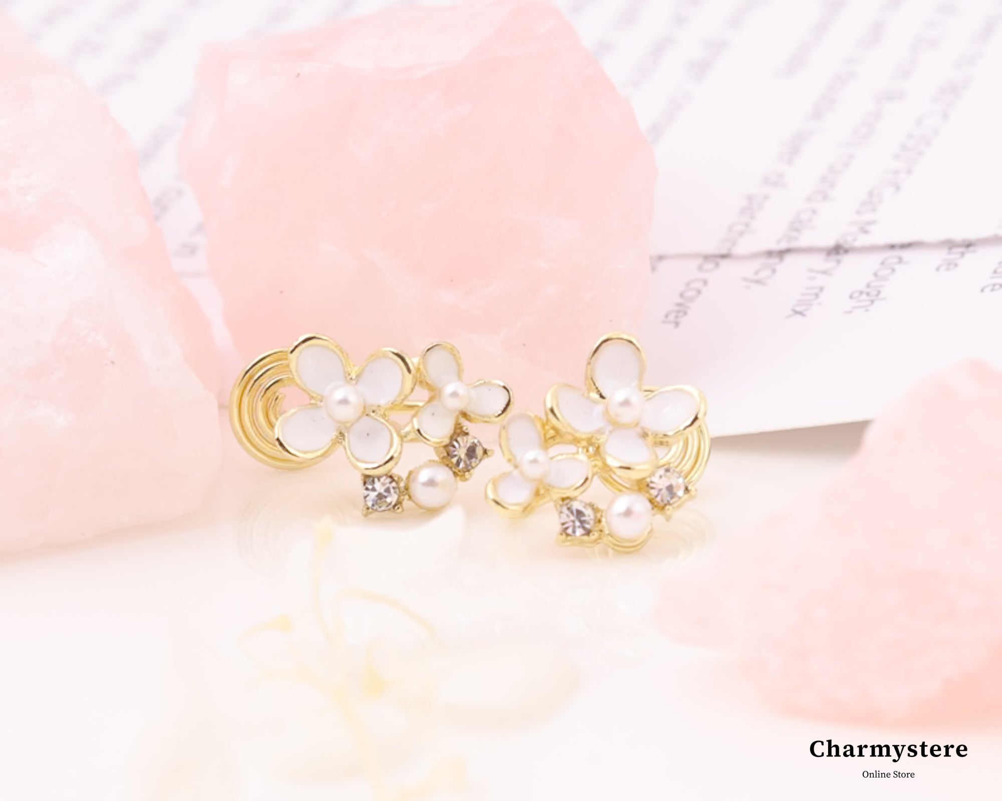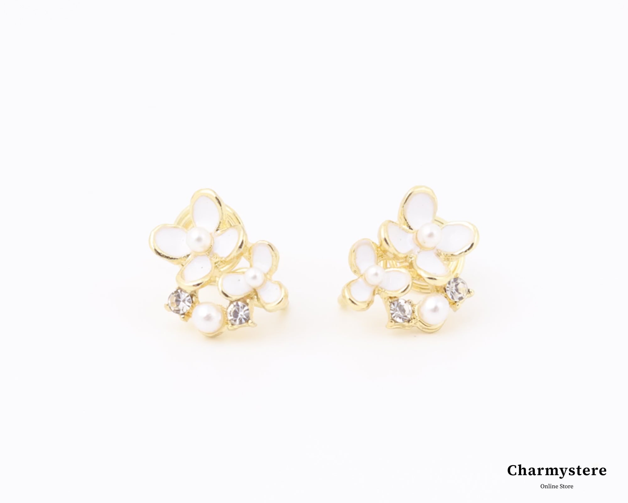 ブーケのようにお花が咲き誇ったデザイン。ホワイトの上品な色味で普段使いもしやすく着け心地も良いイヤリング。