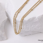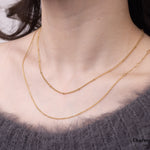 種類の異なったチェーンが2連になった一点でレイヤードコーデが叶うアイテム。