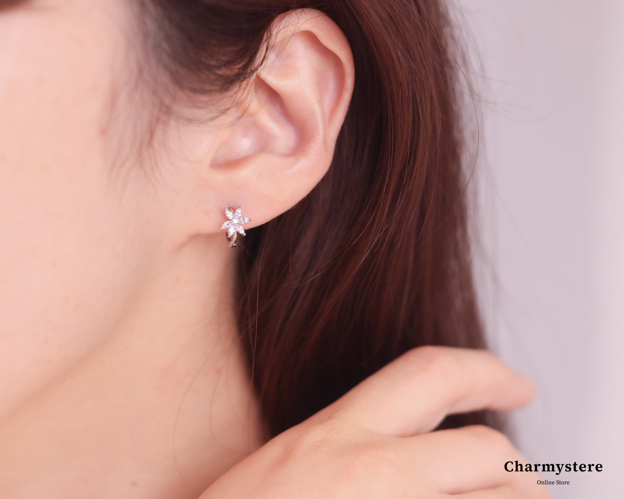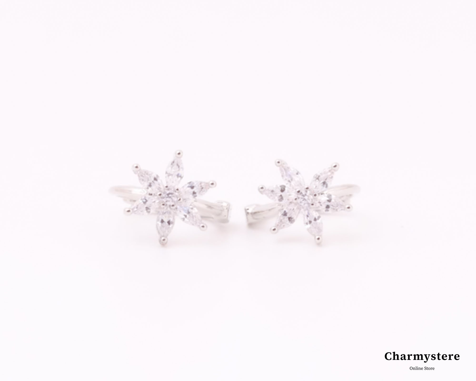 キャッチレスなハギーピアス。雪の結晶をモチーフとして無駄を省いたシンプルで洗練されたデザインに。小振りなのでどんな場面にも使いやすい万能アイテムに。
