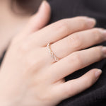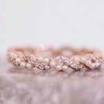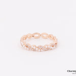 パールラインと、ストーンをライン状に敷き詰めた繊細なデザインからさらにツイストさせた一癖加えたリング。