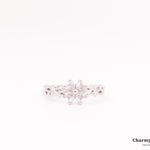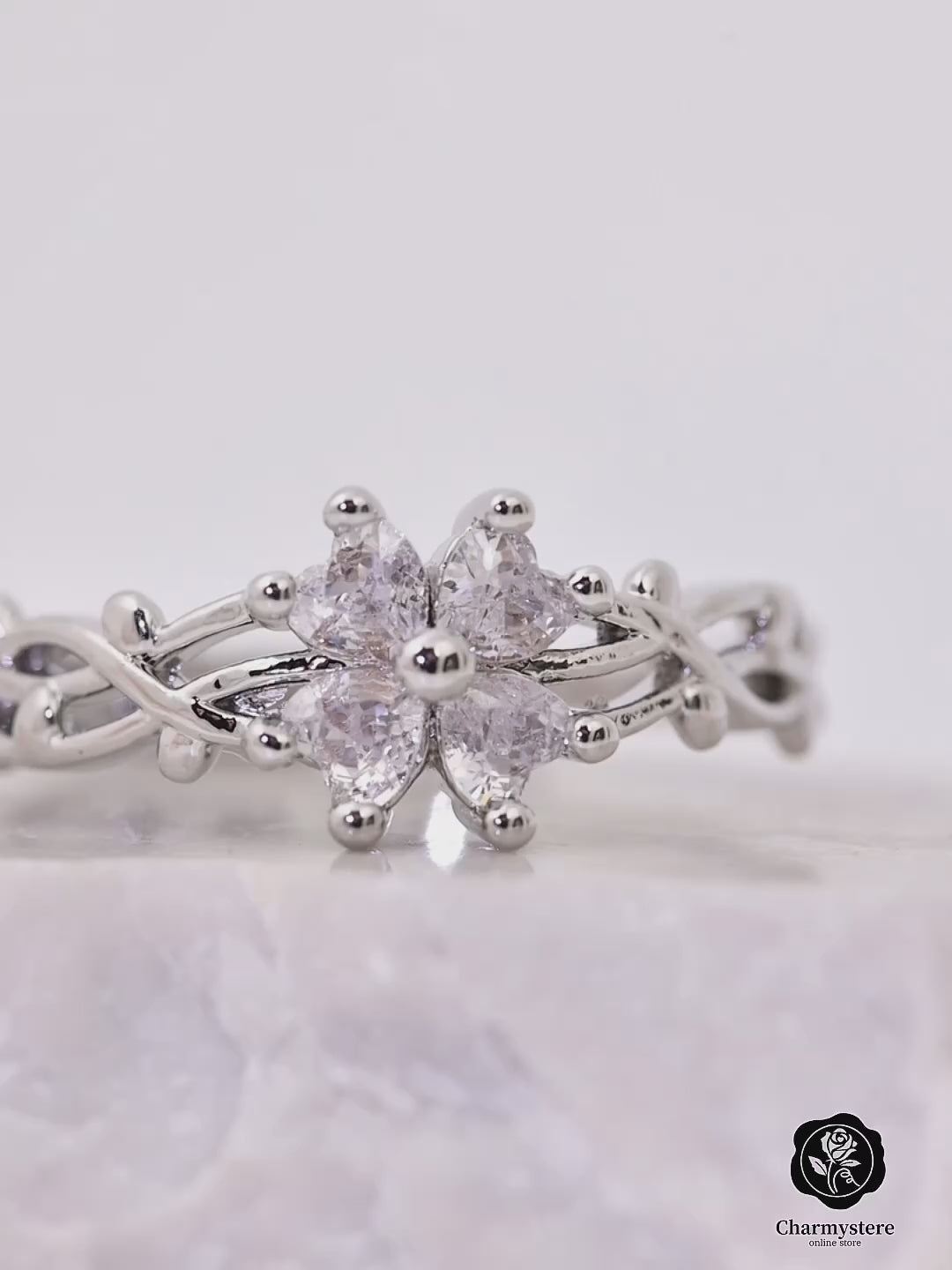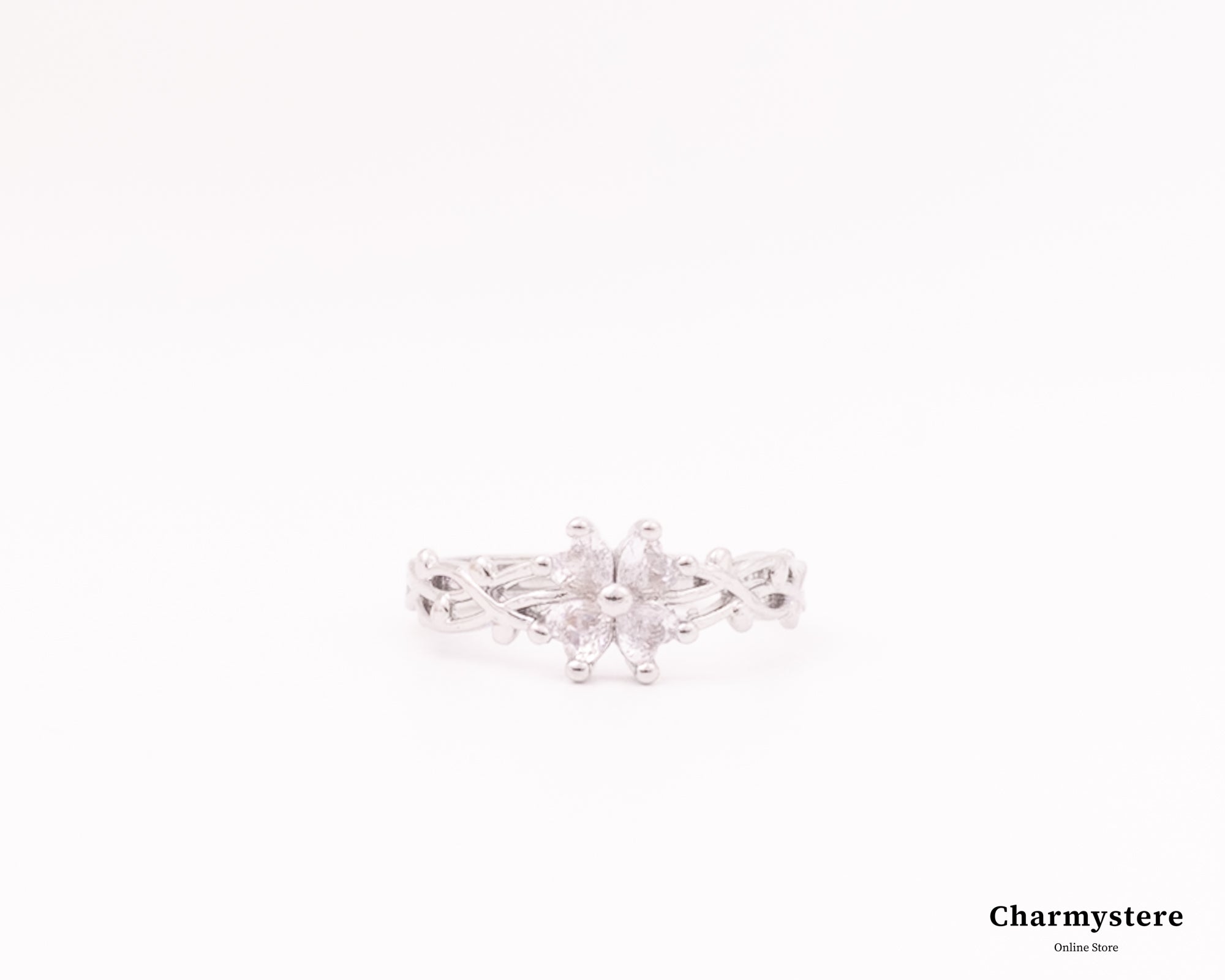 クローバーシルエットのストーンがセンターに配置され、細いラインが連なり存在感あるデザインに。